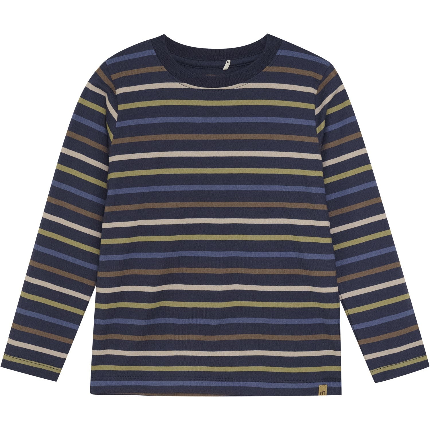 Lys opp hverdagen for de små med Minymos langermede T-skjorte i livlige farger. Denne behagelige genseren har et muntert stripemønster i "Parisian Night" stil og er produsert i en myk bomullsblanding som er skånsom mot sensitiv barnehud. Perfekt for alt fra lek i parken til avslappede hjemmedager. Lett å vaske og vedlikeholde, slik at den holder seg like fin vask etter vask.