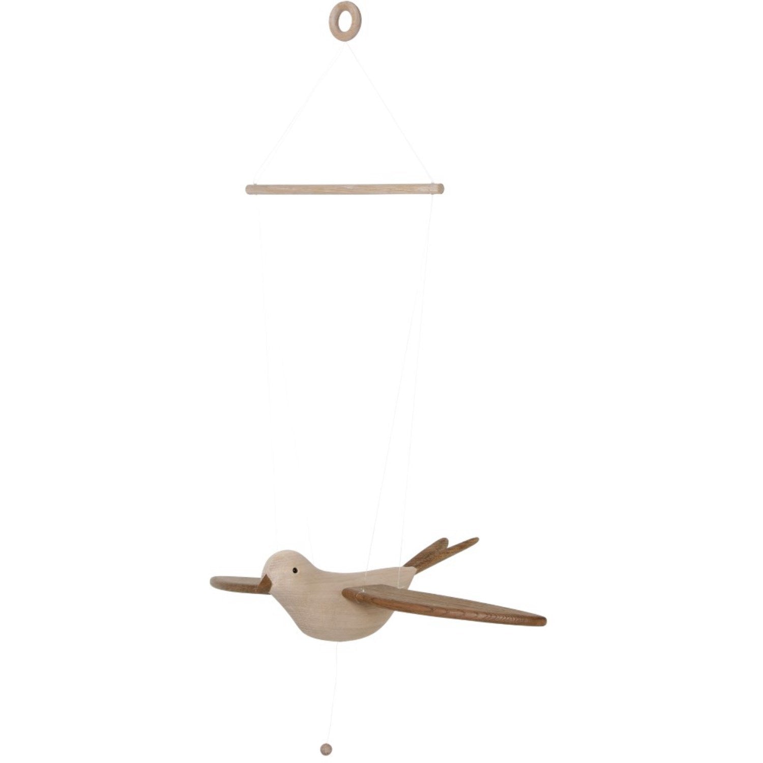 Oppdag den sjarmerende KAS Kopenhagen Smoked Oak Wings Flying Koko, en tidløs og elegant treleke for barn. Koko er designet med sikkerhet og stimulering i tankene. Når du trekker i snoren, aktiverer du en fascinerende bevegelse der kokos vinger flakser grasiøst, noe som bidrar til å stimulere og engasjere barnets sanser. Perfekt for å henge over sprinkelsengen eller ved stellebordet, hjelper denne mobile å utvikle visuell oppmerksomhet hos de minste.