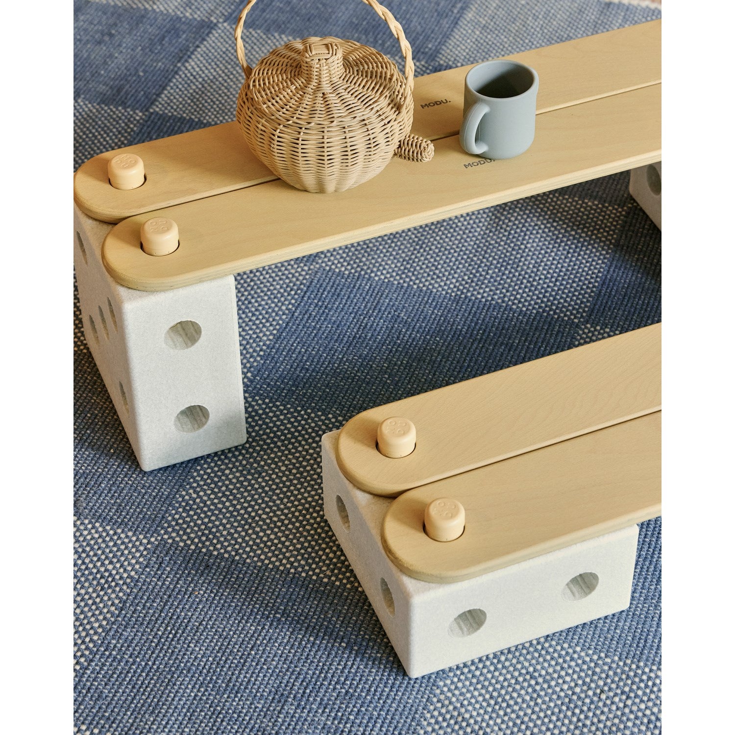Gi barna muligheten til å utfolde seg kreativt og utvikle motorikken med MODU Sand Grey / Honey Yellow Balancebane. Dette innovative lekesettet lar barna bygge sine egne balansebaner, hvor de kan trene balanse og koordinasjon gjennom aktiv lek med over ti forskjellige konfigurasjonsmuligheter. Laget av FSC-sertifisert bjørk og trygt beiset med naturlige linoljer, er dette settet en bærekraftig tillegg til ethvert barnerom. Settet oppfordrer ikke bare til engasjerende og lærerik lek, men kan enkelt omformes til praktiske møbler som hyller eller bord, optimaliserer oppbevaringen, og kan vedlikeholdes med enkel avtørking med fuktig klut. Perfekt for barn fra 3 til 8 år og designet for å tåle opptil 80 kg, gir MODU Balancebane utallige muligheter for lek, læring og utvikling.