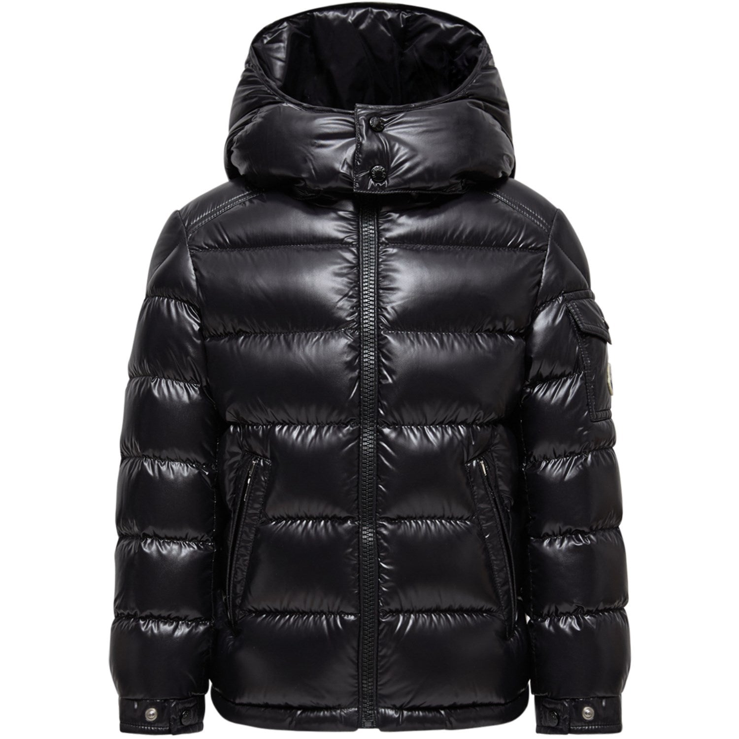Bunt opp din lille eventyrer i Moncler Maya Jacket! Denne koselige svarte pufferen er designet for å takle de kjøligste lekeavtalene og isete skoleløp med letthet. Det speiler Monclers klassiske stil, men nedskalert for de unge trendsetterne, og sikrer at barnet ditt holder seg varmt mens det ser kult ut. Denne jakken er perfekt for å ha på seg over favorittvinterantrekkene deres, og holder moroa i gang, selv når temperaturen synker! Materialer: Ytre: 100 % polyamid/nylon, fôr: 100 % polyamid/nylon - detaljer Polstring: 100 % polyester, dun 90 % + fjær 10 % Vaskeinstruksjoner: Husk å følge vaske- og bruksanvisningen Fremstillet af nylonlak, nylonlakfor, dunfyldt, aftagelig hætte, stativkrave, lynlåslukning, lynlåslommer, ærmelomme med trykknaplukning, justerbare manchetter, logopatch"
