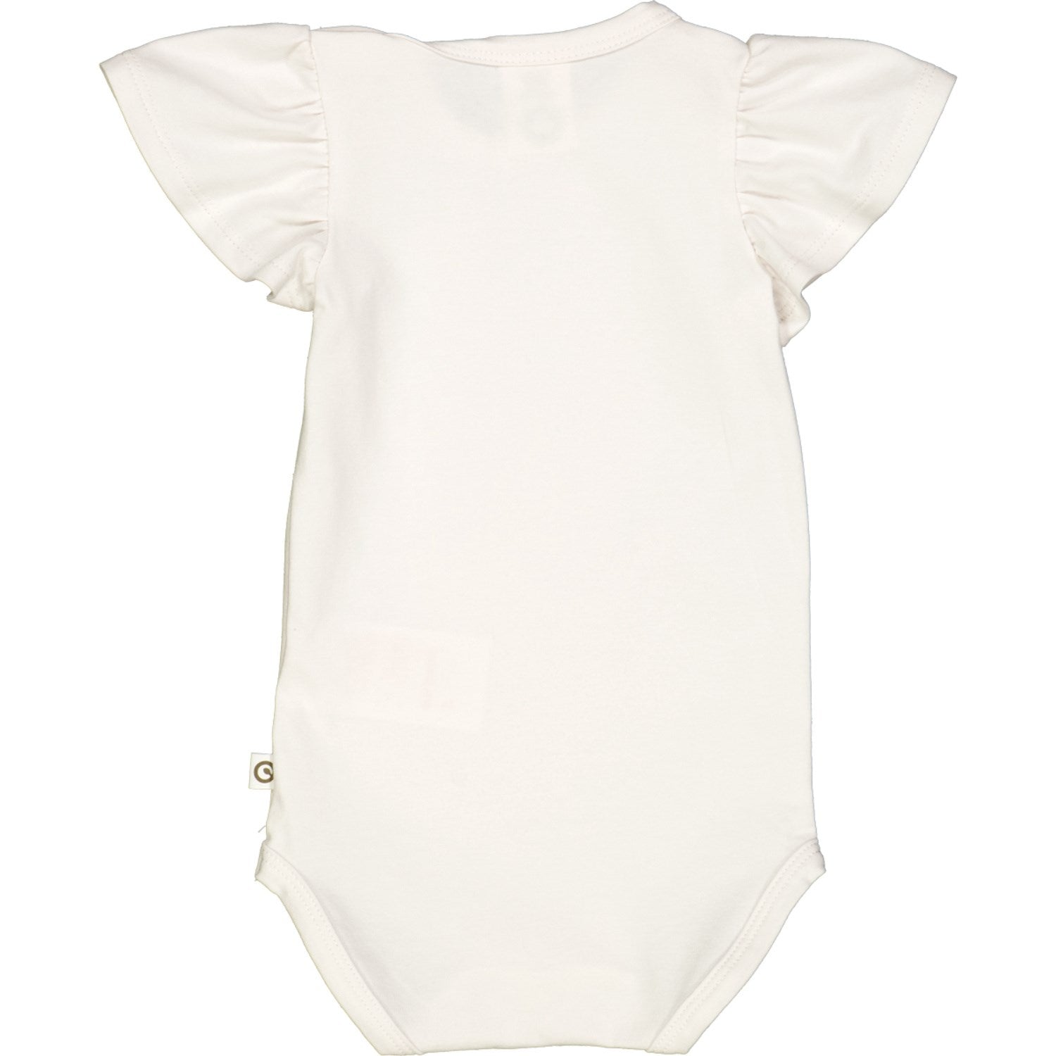 Oppdag den sjarmerende Müsli Balsam Cream Cozy Me Frill Body for de små! Denne bedårende bodyen, med sine korte ermer og søte volanger, er ikke bare stilig, men også eksepsjonelt behagelig. Laget av myk og elastisk single jersey med 95% økologisk bomull og 5% elastan, sikrer den en behagelig passform som varer. Bodyen er enkel å ta av og på med praktiske trykknapper både nederst og i nakken.