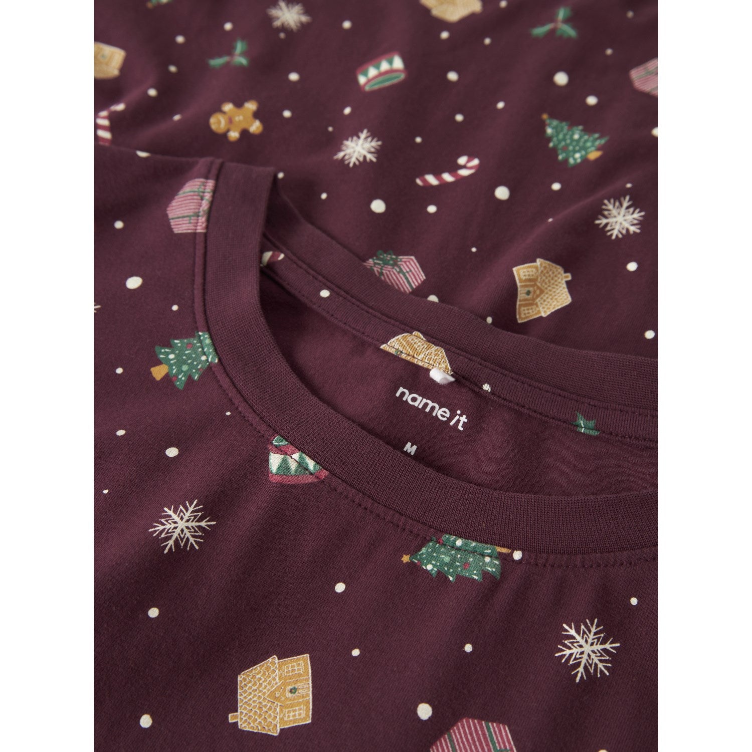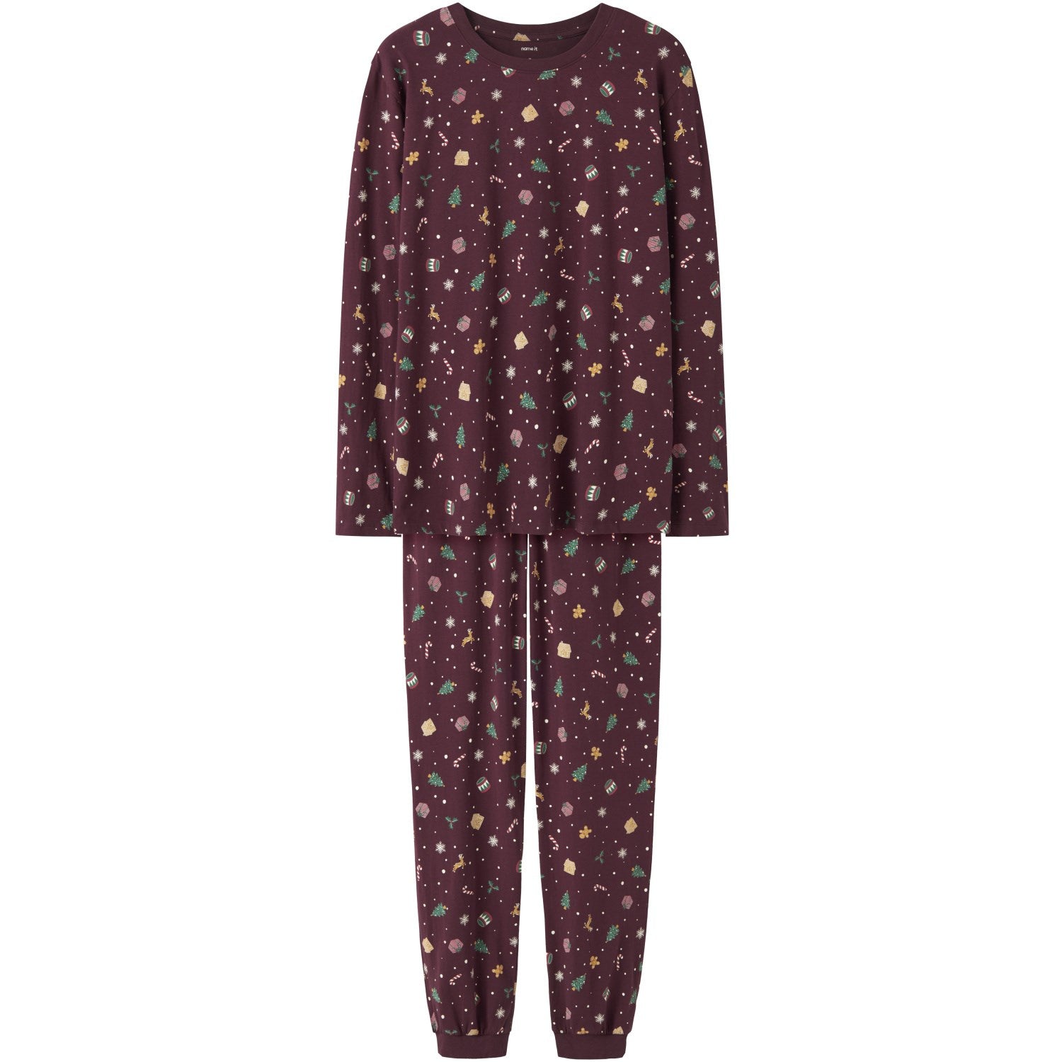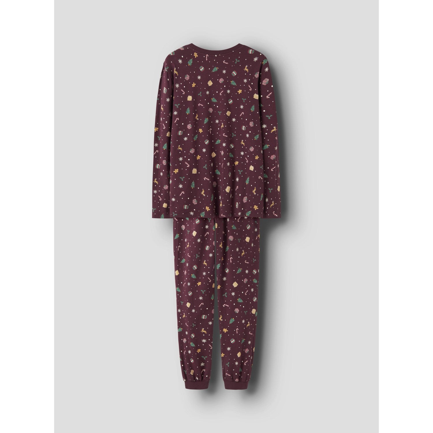 Name It Burgundy Xmas AOP Nanvismas Ls Nightset Voksen