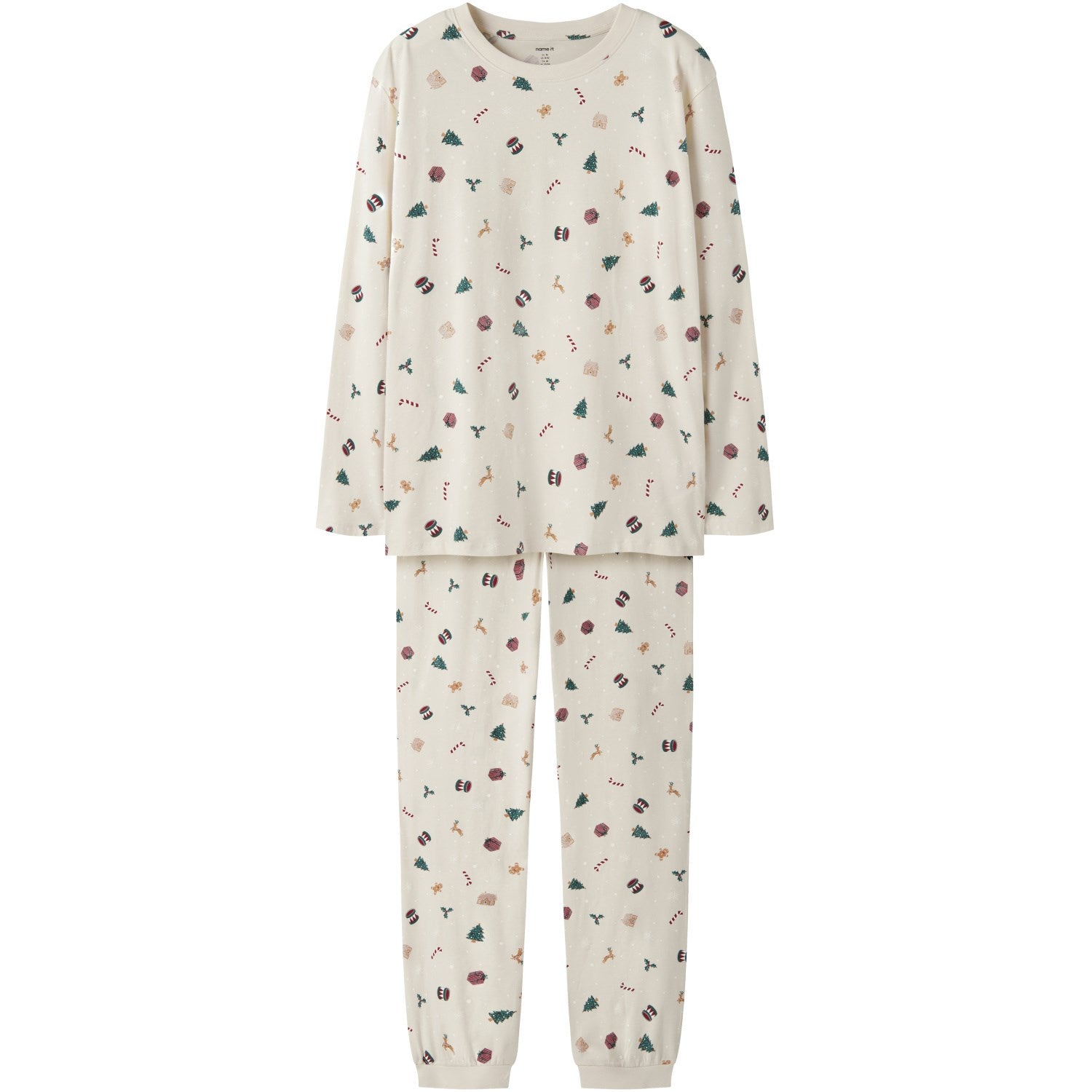Name It Whitecap Gray Xmas AOP Nanvismas Ls Nightset Voksen