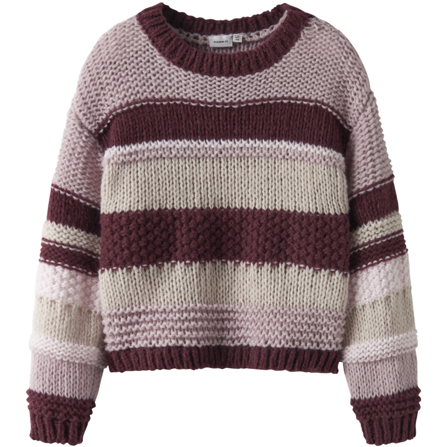 Gjør barnets høst- og vintergarderobe klar med Name It Burgundy Nkfoline Ls Strikk, en strikket genser som kombinerer stil med funksjonalitet. Dette plagget er fremstilt i en behagelig strukturstrikk med en spennende 3D-effekt og trendy design. Med en klassisk rund hals, lange ermer med senkede skuldre og ribbestrikkede mansjetter sikrer denne genseren en god passform og maksimal komfort hele dagen. Den ribbestrikkede nederkanten tilføyer en ekstra detalj som fullfører utseendet. En nydelig burgunder farge med et tiltalende mønster gjør dette til et must-have i enhver barnegarderobe. Genseren er ideell for daglig bruk og passer ypperlig både til skolen og til fritid.