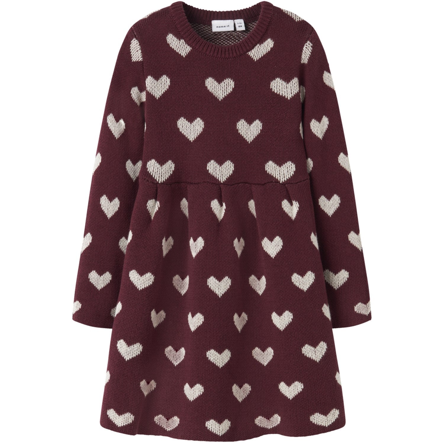 Name It Burgundy Peyote Heart Nmfoana Ls Strikk Kjole