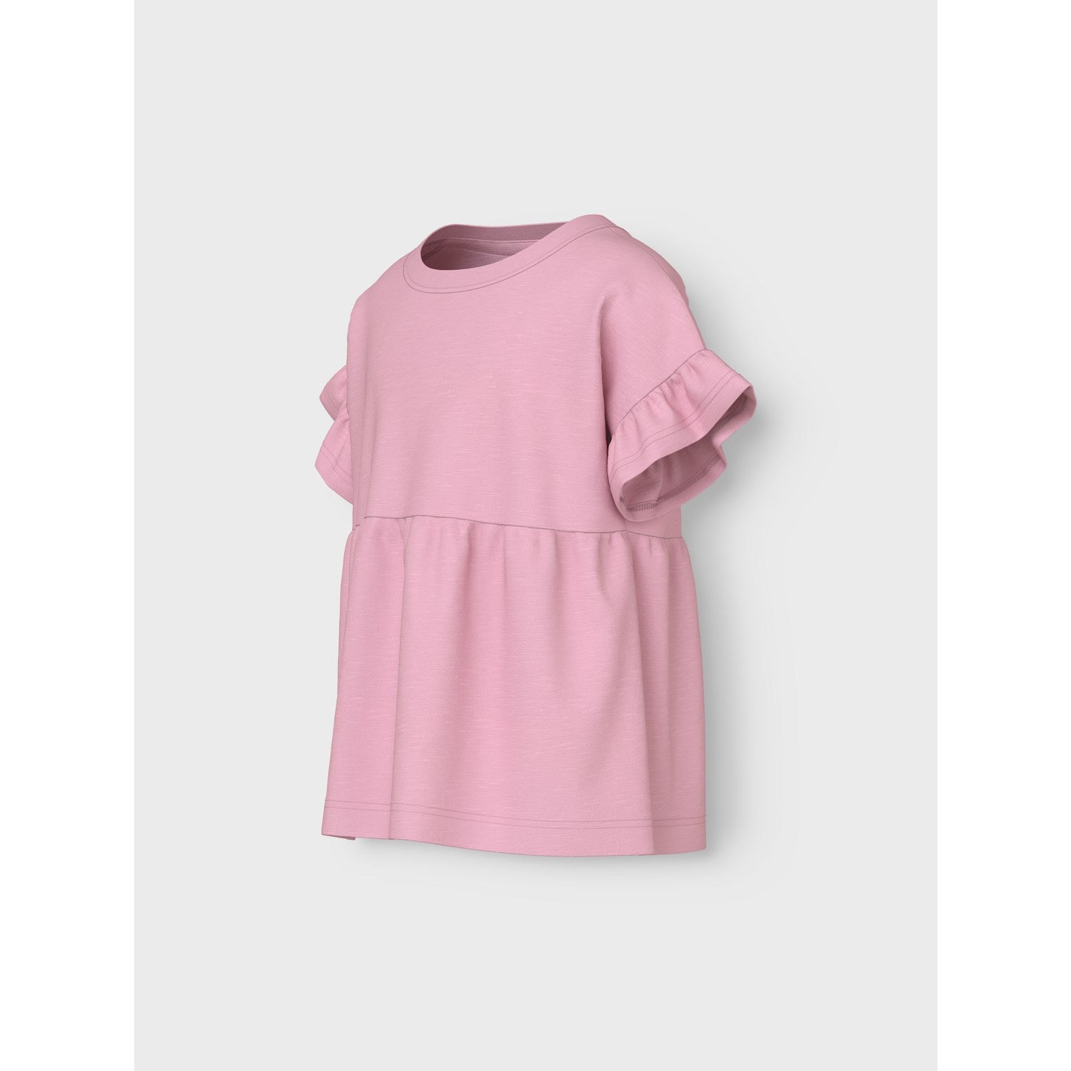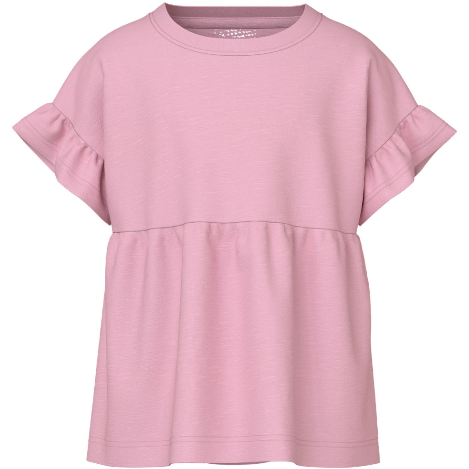 Gjør barnets antrekk lekent og komfortabelt med Name It Cameo Pink Vavina Topp, en stilfull tilføying til enhver garderobe. Denne toppen er laget av jersey, et mykt og elastisk materiale, som sikrer en behagelig passform og frihet til å bevege seg. Med sin runde hals og korte ermer er den ideell både til daglig bruk og spesielle anledninger. Den normale passformen og det sarte kamuflasjerosa mønsteret gjør denne toppen både praktisk og trendy. Lett å vedlikeholde, den holder seg fin vask etter vask.