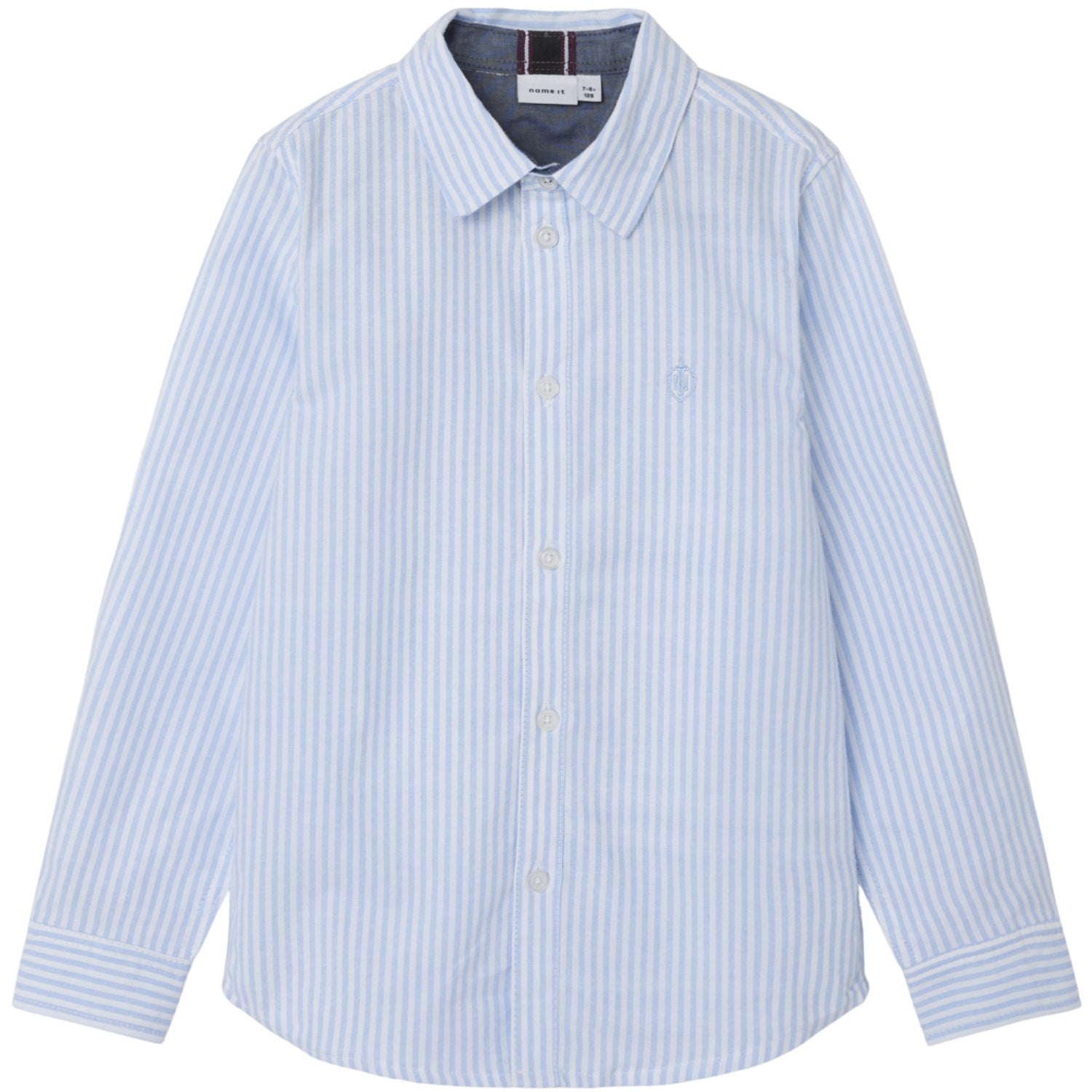 Kle opp barnet ditt med 'Name It Campanula Newsa Skjorte Noos', perfekt for alle festlige anledninger. Denne skjorten er laget av høykvalitets Oxford-stoff, kjent for sin tofargede, strukturerte overflate som gir et tidløst og klassisk utseende. Med en normal passform, skjortekrage og lange ermer med mansjetter med knapper, kombinerer den stil med komfort. Broderidetaljene tilfører et elegant preg, mens knappefestet sørger for enkel påkledning. Et ideelt valg for varighet og lettstelt bruk, som holder barnet både stilig og komfortabelt under enhver spesiell begivenhet.