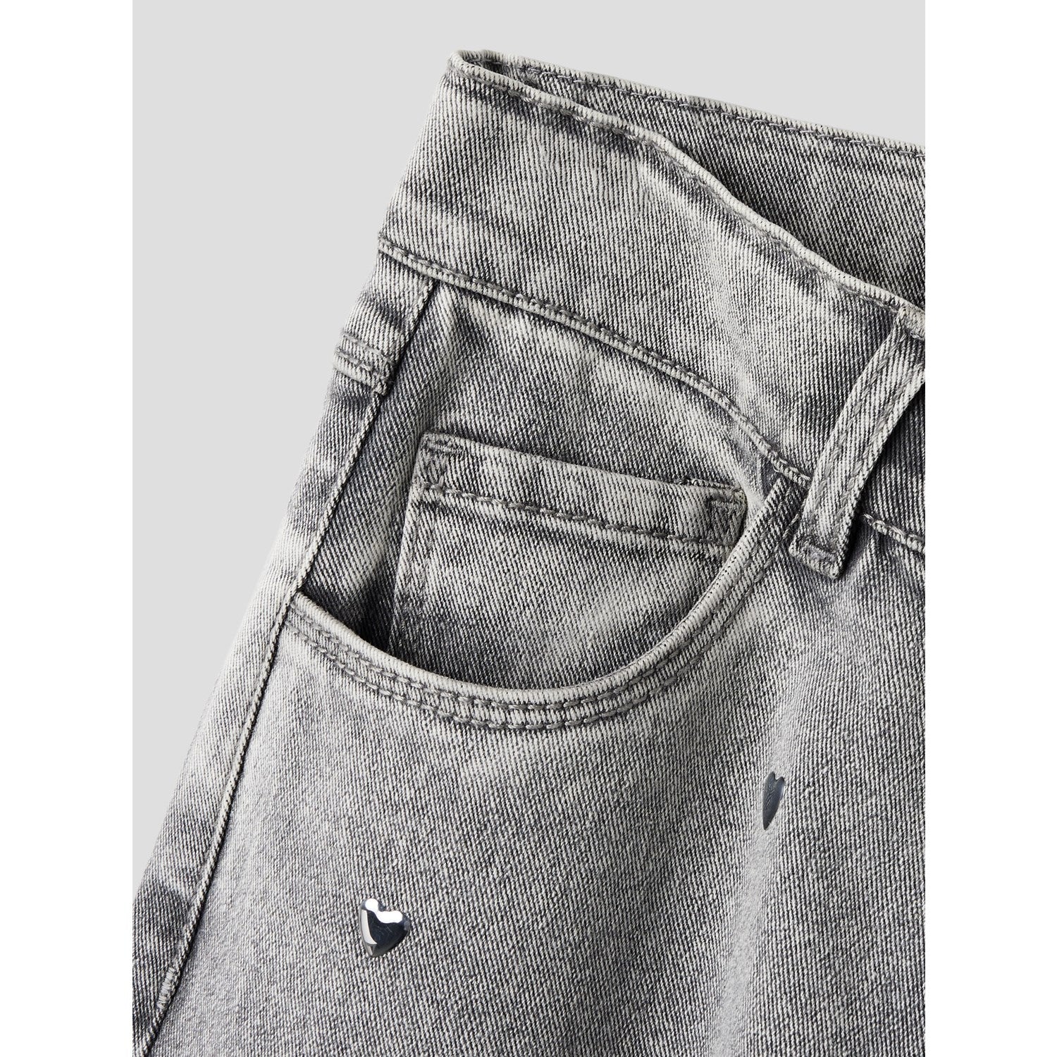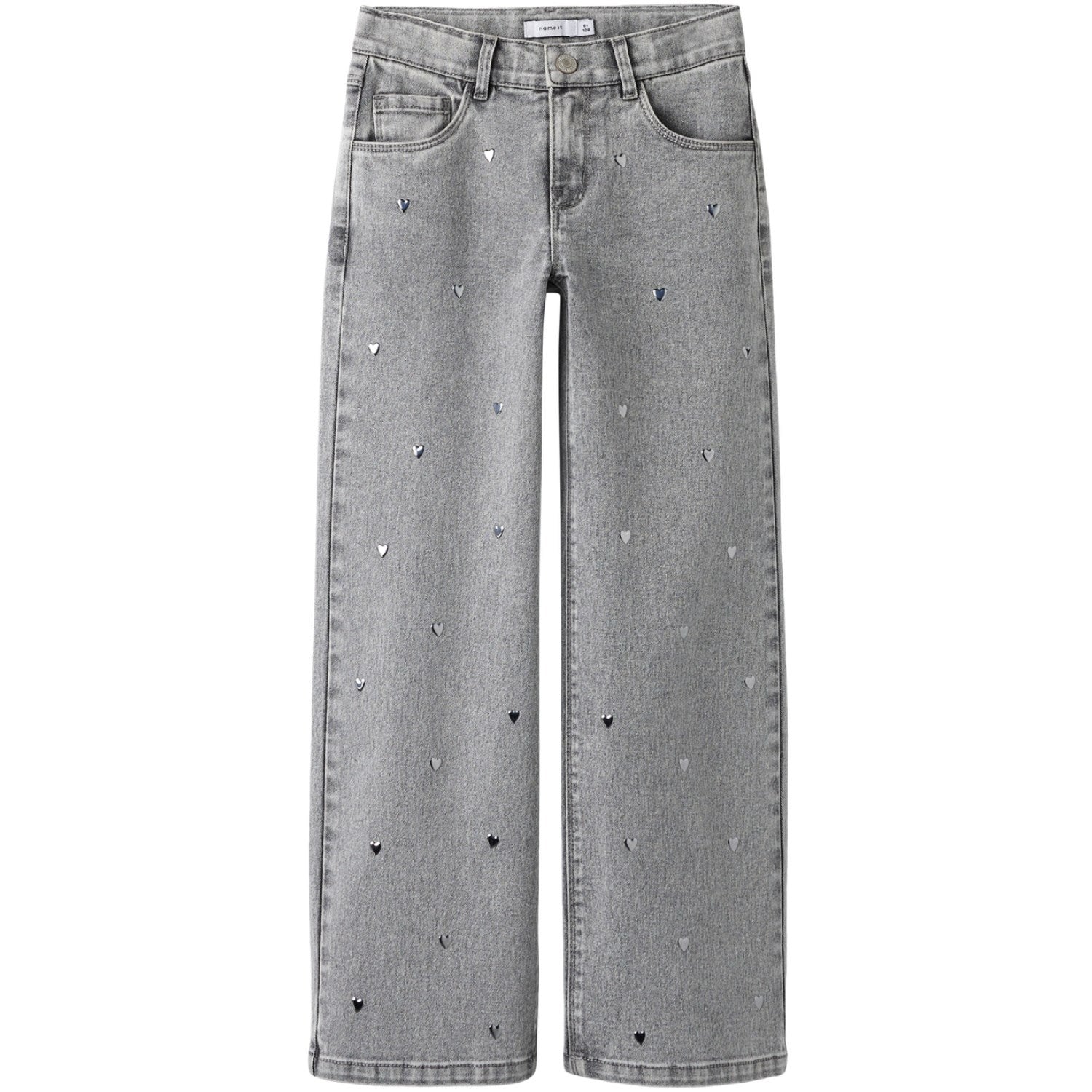 Name It Light Grey Denim Heart Studs Nkfrose Wide Jeans 5503-Ya N