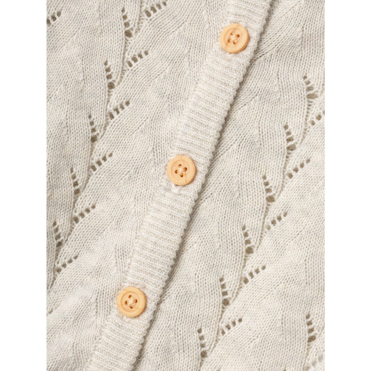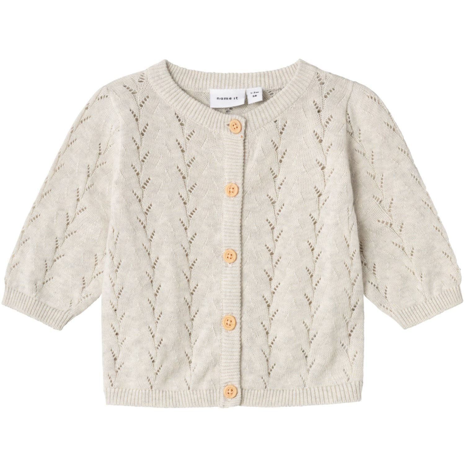 Oppdag en stilren favoritt for barnegarderoben med vår "Name It Peyote Melange Banni Strik Cardigan Noos". Denne strikkede cardiganen kombinerer funksjonalitet med et sjarmerende design, perfekt for litt kjøligere dager. Cardiganen er laget med pointelle-strikk, som gir et åpent og geometrisk mønster som ikke bare ser elegant ut, men også gir et pustende plagg.