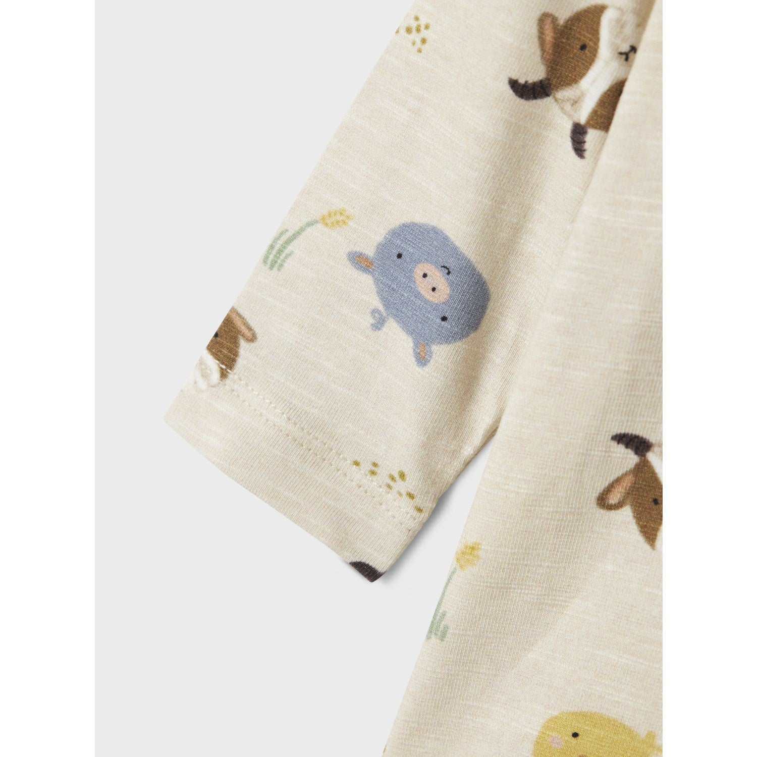 Bodyen har et sjarmerende og lekent mønster som gjentar seg over hele stoffet, noe som gir et friskt og stilig preg. Trykknappfeste ved lukkingen gjør det enkelt å kle på og av, ideelt for den travle hverdagen. Den er tilgjengelig i ulike størrelser som passer godt til barn i ulike aldre og vekstfaser.
