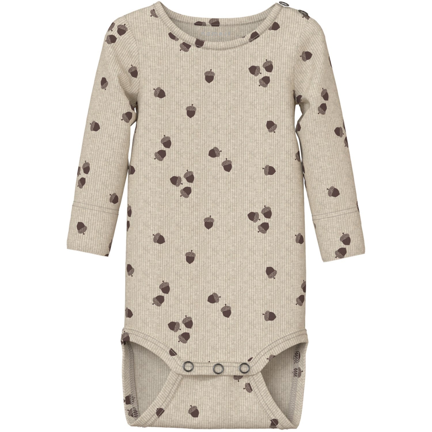Denne bodysuiten har en praktisk rund hals og lange ermer, ideell for kjøligere dager. Trykknapplukning på skulderen og i skrittet gjør klesbytte lekende lett, ideelt for aktive barn og travle foreldre. Hele overflaten er dekorert med et lekent mønster som tilfører en ekstra touch av gledelig estetikk til barnets hverdagsantrekk.