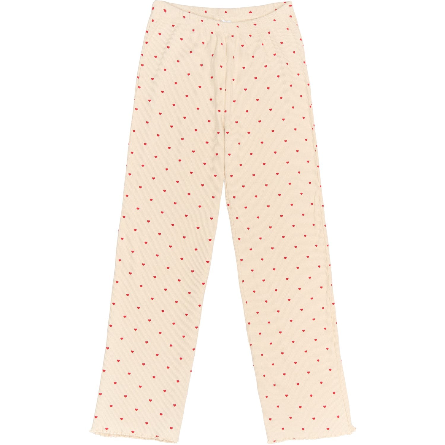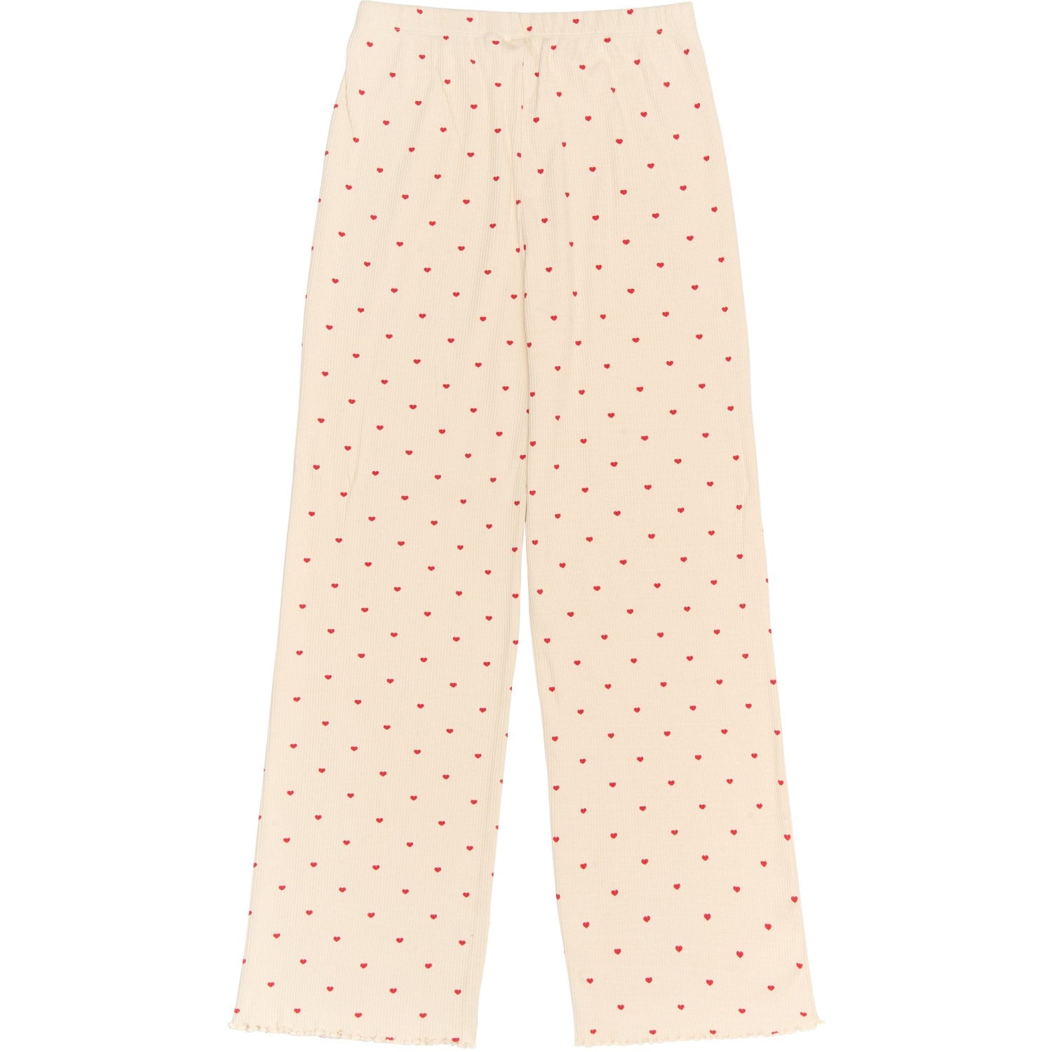 Oppdag det sjarmerende nattsettet fra THE NEW, et must for enhver avslappende kveld eller behagelig natt. Dette settet, laget av GOTS-sertifisert økologisk bomull, omfavner både stil og komfort. Den kremfargede blusen og buksene er dekorert med et nydelig all-over hjertemønster, som tilfører et feminint og lekent preg. Med sin normale passform og ribbestrikkede materiale, garanterer settet en god natts søvn uten at det går på kompromis med bevegelsesfriheten. Designets babylock-kanter gir en delikat finish, og gjør dette settet ideelt for både avslapping og søvn. I tillegg til å være en perfekt gaveide, tilbyr THE NEW lignende design for barn, slik at hele familien kan nyte matchende nattøy under høytidsfeiringen.