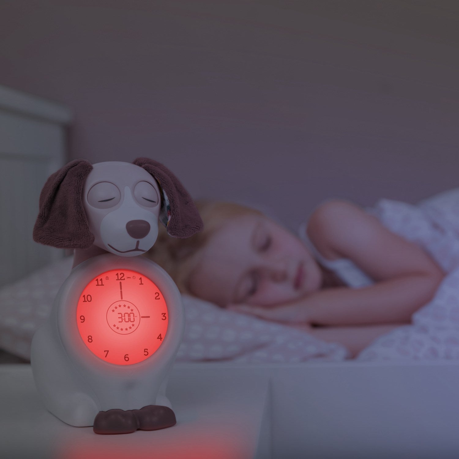 Oppdag søvnmagien med Zazu Pink Davy The Dog Søvntrener! Dette innovative nattlyset er designet for å lære barna dine når det er tid for å sove og når det er greit å stå opp. Davy lukker sine øyne ved leggetid og åpner dem igjen om morgenen til riktig tid. Nattlyset skifter farger lik et trafikklys for å signalisere natt, tidlig morgen og morgen. Det enkle, visuelle signalet hjelper selv de minste barna å forstå når det er sovetid. Davy fungerer også som en vekkerklokke med justerbare lydinnstillinger for større barn. Med en sikker og barnetilpasset design i robust ABS-materiale, garanterer denne søvntreneren både trygghet og langvarig bruk. Tilgjengelig i flere farger, Davy er ikke bare funksjonell, men også en sjarmerende tilføyelse til ethvert barnerom. Lett å betjene og tilpasset dagens teknologi, kommer den med en USB-kabel og har flere lysstyrkeinnstillinger. La Zazu Pink Davy The Dog gjøre morgenrutinene enklere og mer forutsigbare, samtidig som den stimulerer barnets forståelse av tid.