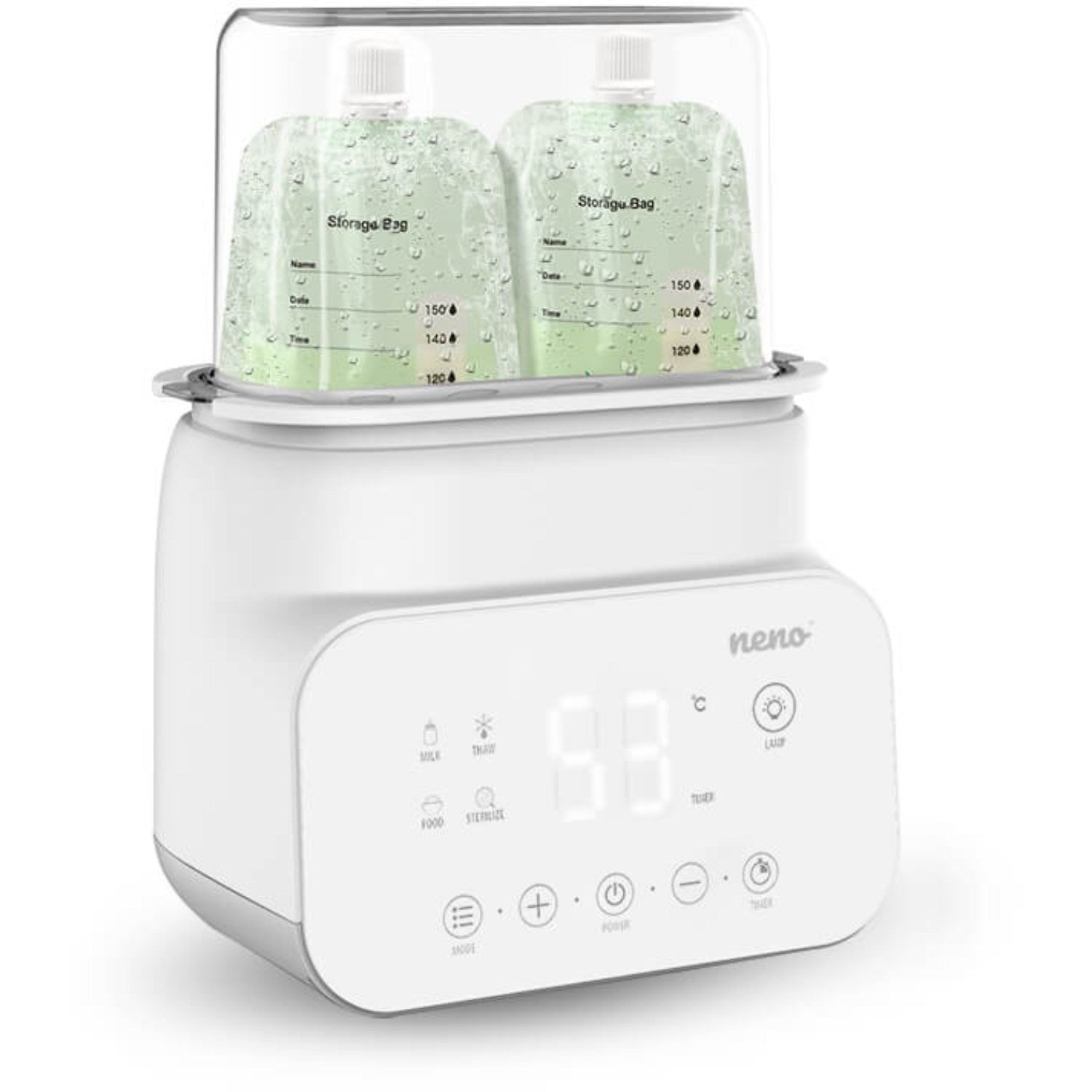 Dette praktiske utstyret tilbyr også en serie med andre nyttige funksjoner som rask og jevn oppvarming av melk, en tinefunksjon for mat, og en behagelig nattbelysning, noe som gjør det enkelt å bruke enheten når som helst. Neno Vita er ikke bare enkel å betjene med sitt klare displaypanel, men også komfortabel og sikker for hele familien. Produktet er spesielt designet for å fungere med 150 ml, 240 ml og 300 ml flasker og passer til flere merketyper, noe som tilbyr stor fleksibilitet.