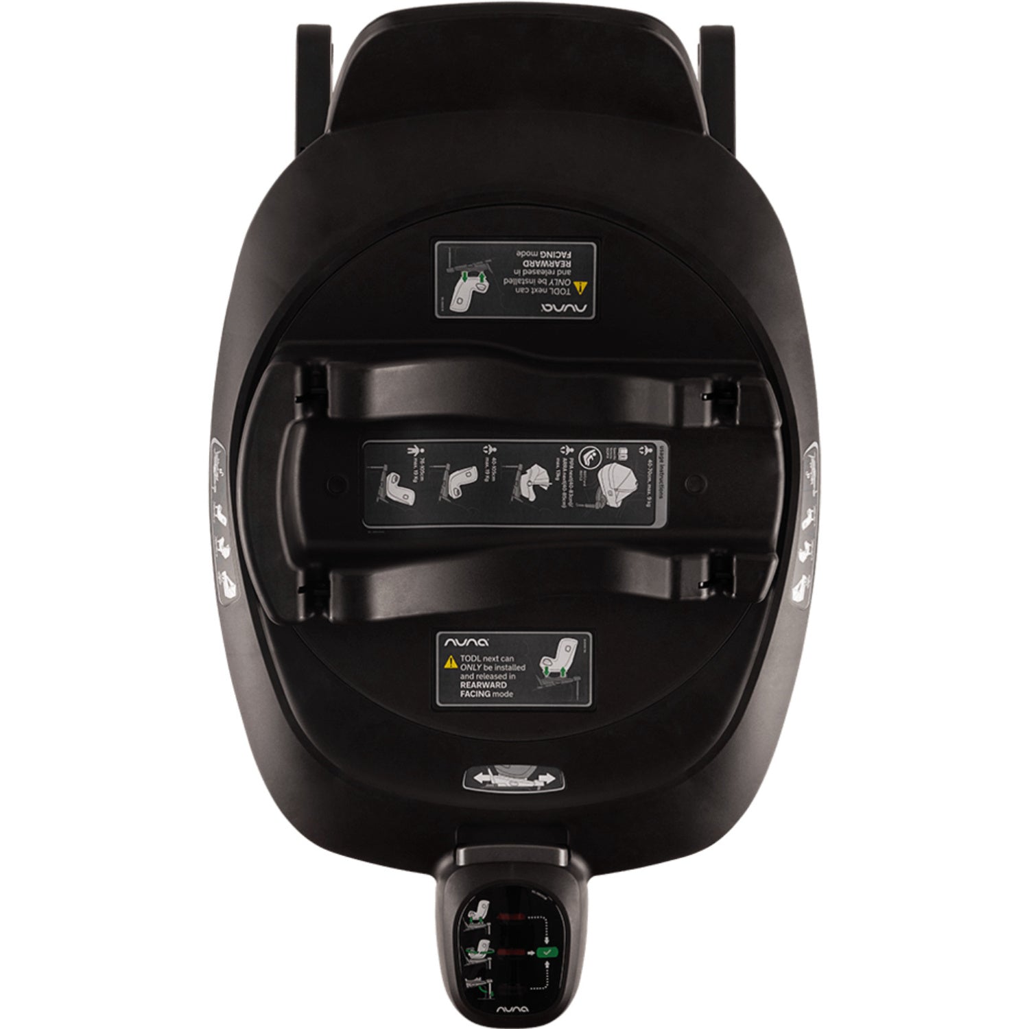 - Sikker skjerm: Fargede indikasjonssøyler bekrefter riktig base- og seteinstallasjon. Ingen tvil