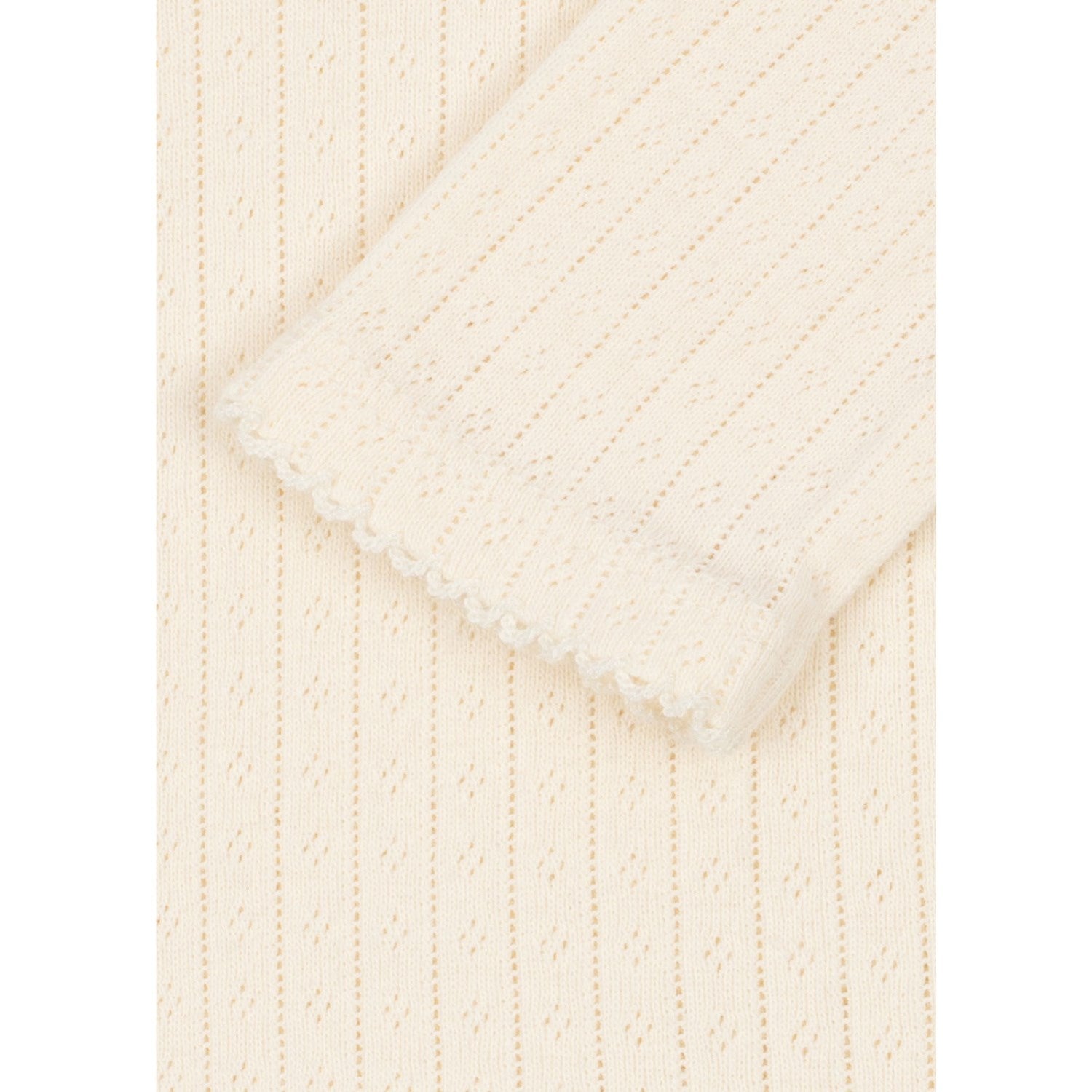 Oppdag den sjarmerende Konges Sløjd Minnie-blusen i antikk hvit. Denne delikate genseren er laget av myk økologisk bomull med et sjarmerende pointelle-design, perfekt for barnets sensitiv hud. Den pustende stoffkvaliteten sikrer komfort gjennom alle aktiviteter. Med sin nøytrale farge og tidløse mønster, blender den sømløst inn i enhver barnegarderobe. Lett å vedlikeholde, denne blusen er ikke bare stilfull, men også praktisk for daglig bruk.