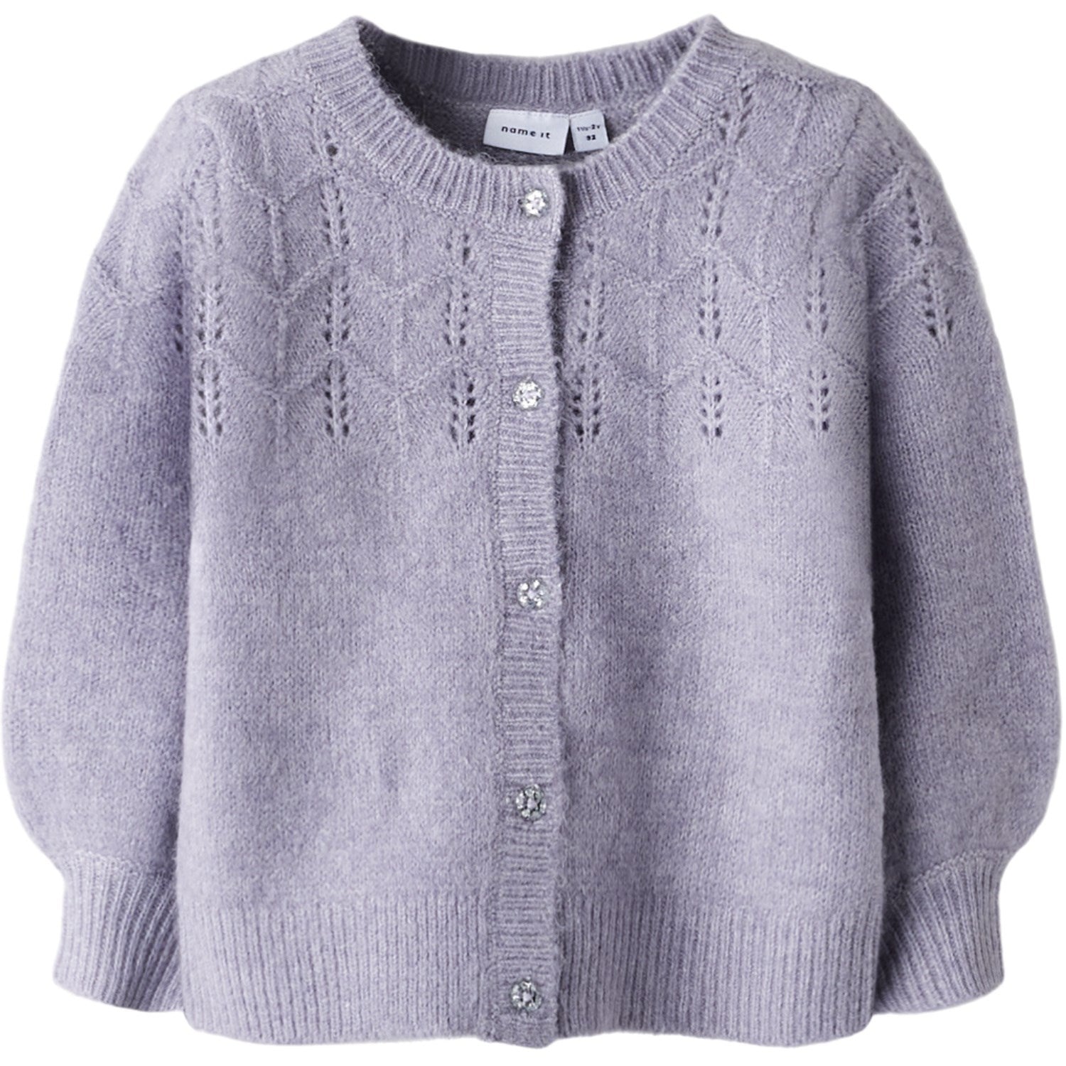 Gjør barnets garderobe både stilfull og praktisk med vår Name It Lavender Gray Nmfbatrilla Ls Strikk Cardigan. Denne sjarmerende cardiganen er laget med en detaljert pointelle-strikk som tilbyr et delikat, åpent design og geometrisk mønster, noe som gir et elegant og distinkt utseende. Skapt i myke nyanser av lavendelgrått, kombinerer den komfort med moderne stil. Med en klassisk rund hals, lange ermer og ribbestrikkede mansjetter sikrer den en behagelig passform for ditt barn. Knappefestet foran gjør den enkel å ta av og på, noe som gir både funksjonalitet og en tidløs sjarm. Perfekt for alt fra skoledager til familieutflukter, denne cardiganen er en allsidig tillegg til enhver barnegarderobe.