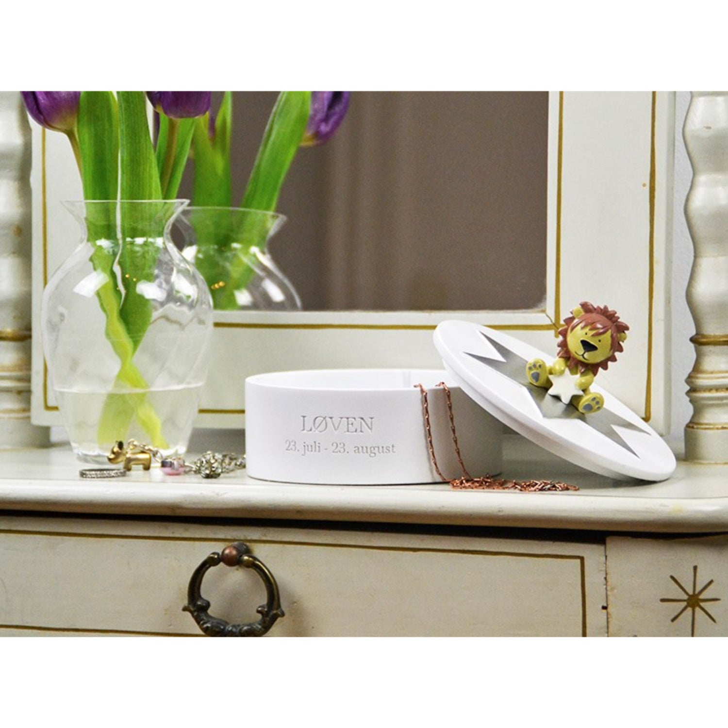 Oppdag det sjarmerende Kids by Friis Smykkeskrin Løven – perfekt for å oppbevare små skatter! Dette søte skrinet har et avtagbart lokk og er laget med gjennomsiktig pleksiglass, som gjør det enkelt for de små å se og velge sine favorittsmykker. Det robuste designet sikrer sikkerhet, mens den tiltalende løveillustrasjonen både stimulerer barnets fantasi og pynter opp ethvert barnerom. En ideell kombinasjon av funksjonalitet, sikkerhet og estetisk appell gjør dette til en perfekt gave som både er praktisk og inspirerende for barn. Materialer: Polyresin