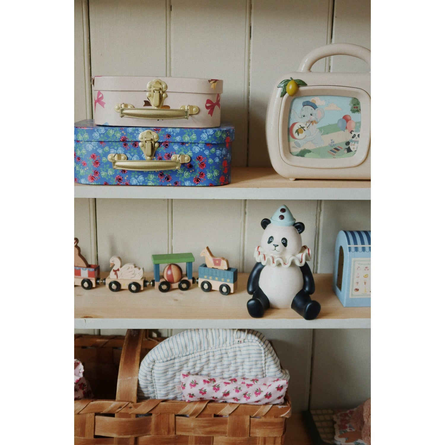 Gi barnas rom et eventyrlig tilskudd med Konges Sløjd Magia Blue 2 Pakke Koffert FSC. Dette sjarmerende settet består av to papp-lekekofferter, komplett med robuste metallhåndtak. Den mindre kofferten kan enkelt oppbevares i den større, optimalisert for effektiv bruk av plass. Disse lekekoffertene er ikke bare praktiske for oppbevaring av små skatter, men også flotte for å inspirere til lek og læring. Deres tiltalende design og farger stimulerer både visuell estetikk og kreativitet hos barn. Materialer: Papp / metall Sertifiseringer: FSC MIX KREDITT