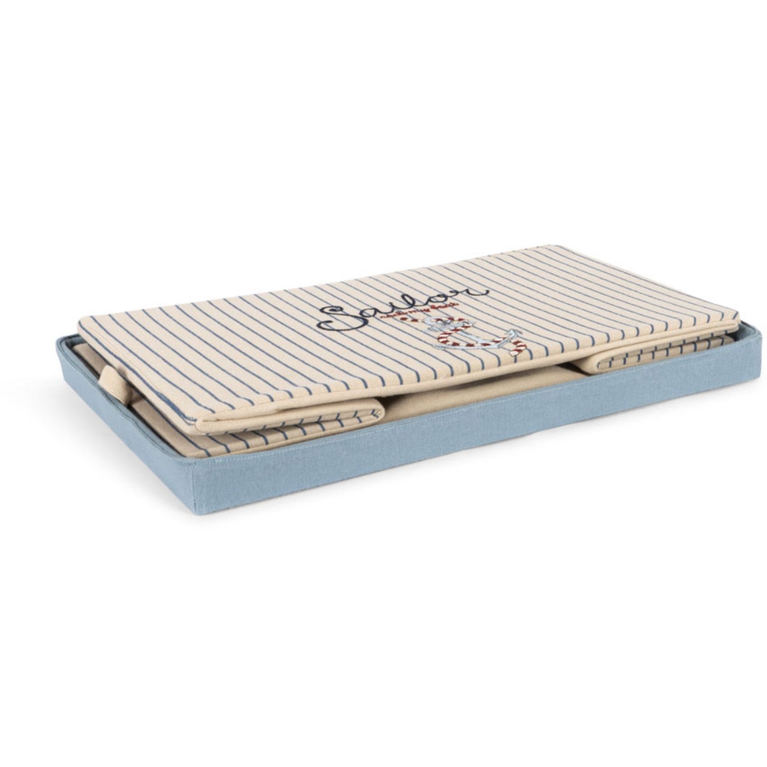 Gjør barnas rom til et sikrere og mer organisert sted med Konges Sløjd Sailor Oppbevaring Kurv Small. Denne sjarmerende lille kurven er perfekt for å holde orden på leker, lego og småting, samtidig som den bidrar til rommets estetikk med sitt søte design. Fremstilt av 100% bomull, er den både myk og enkel å håndtere – den kan lett brettes sammen og settes bort når behovet for oppbevaring endres. Med sine behagelige dimensjoner på 38 x 21 x 23 cm, passer den de fleste steder og tilbyr en funksjonell og estetisk løsning på oppbevaringsbehov.