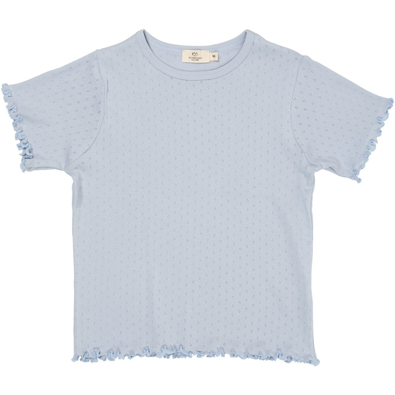 COPENHAGEN COLORS Dusty Blue Summer Pointelle T-Skjorte Ss