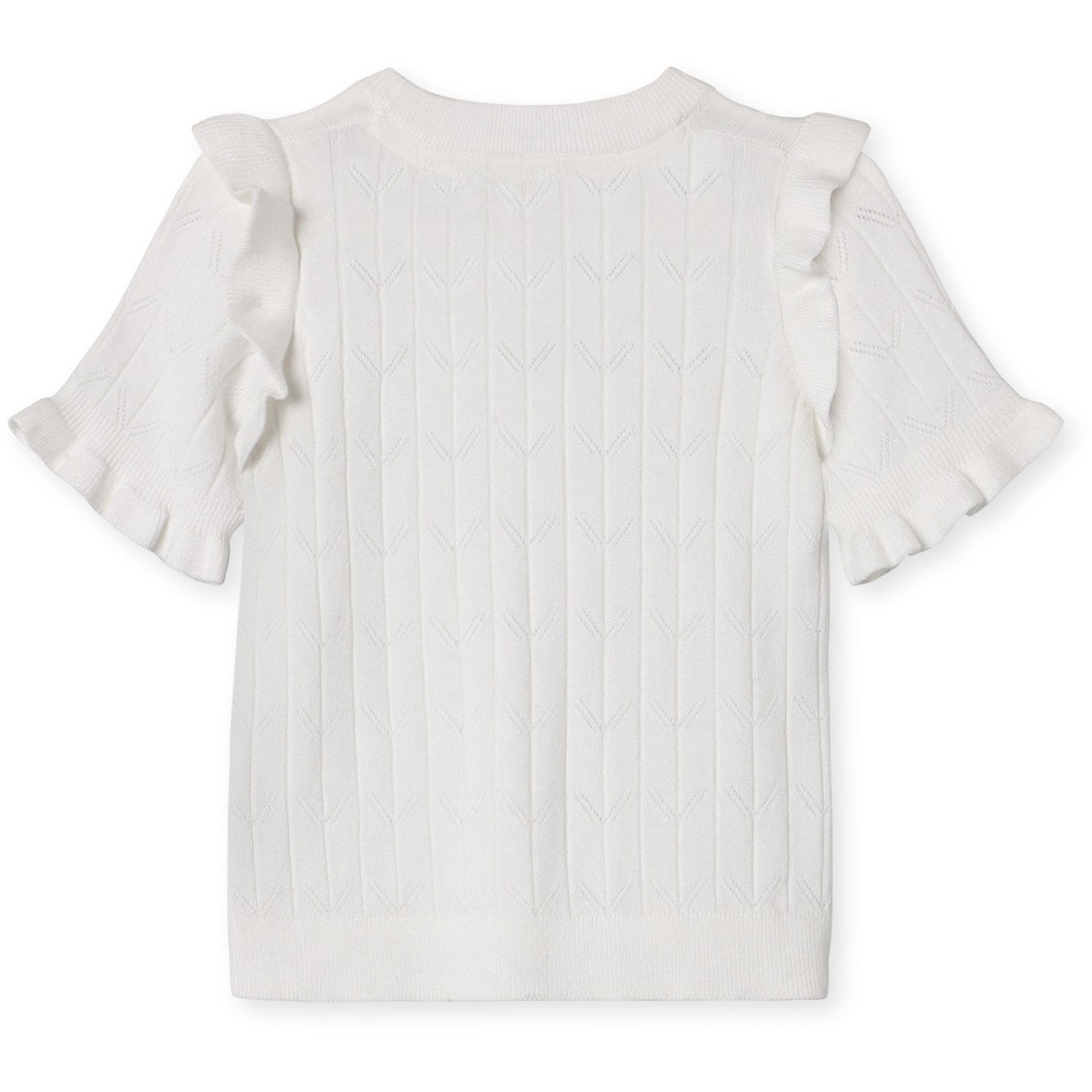 Kle ditt lille solskinn i Fliink Cloud Dancer Sunny Bluse, hvor komfort møter leken eleganse! Denne søte blusen har herlige korte ermer utsmykket med volanger, perfekt for å snurre. Den er laget av myk, bærekraftig LENZING™ ECOVERO-viskose™ og et snev av polyester, og gir både et mykt preg og et bevisst valg for miljøet. Det lette, pointellestrikkede stoffet og den klassiske runde halsen sørger for at barnet ditt holder seg komfortabelt og stilig hele dagen. Ideell for både livlige lekeavtaler og rolige historiestunder. Hold den på sitt beste med skånsom vask og legg den flatt til tørk.