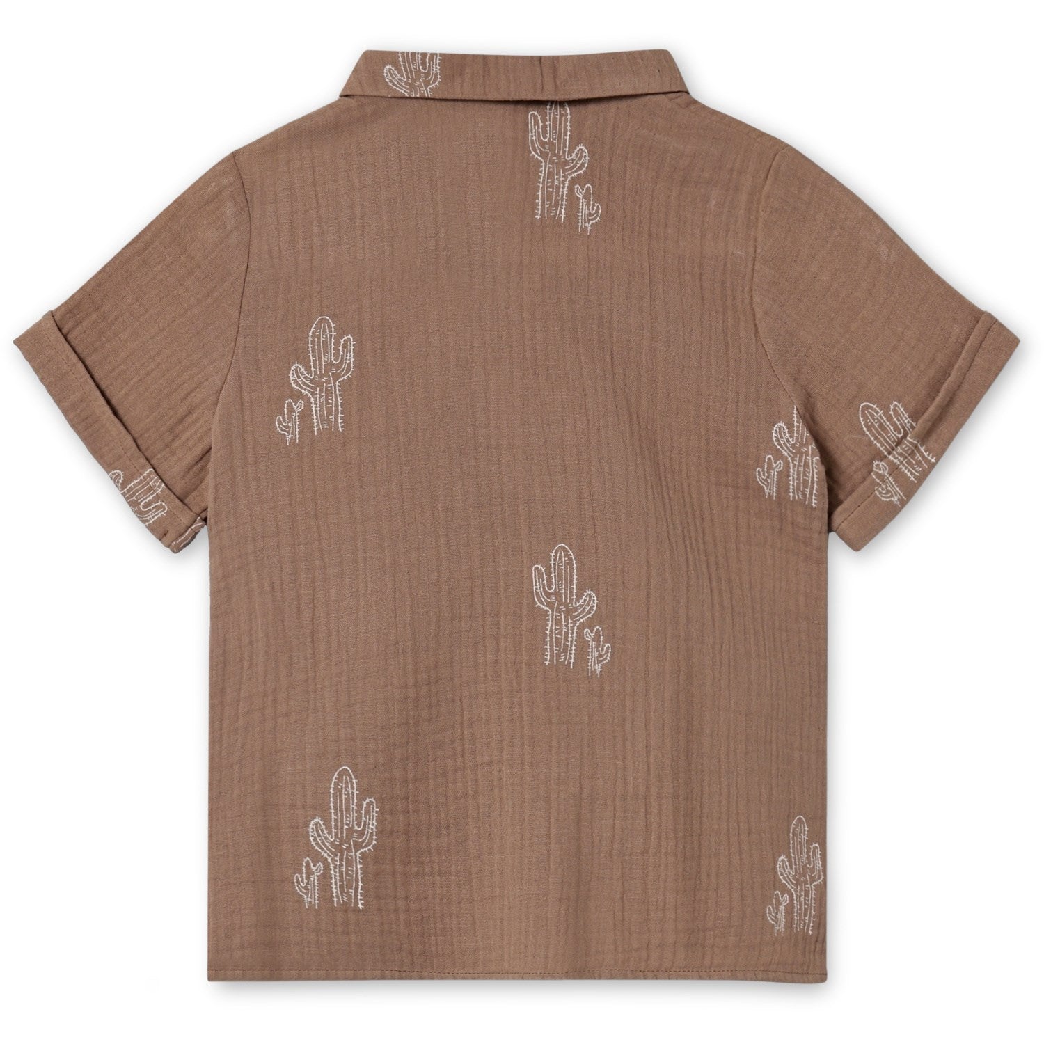 Kle den lille oppdagelsesreisende i Fliink Pine Bark Cactus Aop Hello Shirt, der lekenhet og komfort kolliderer! Denne kortermede skjorten er laget av myk, vevd musselinbomull og har en smart krage, en praktisk brystlomme og enkle knapper foran. Perfekt for eventyrlige dager under solen, og passer fantastisk sammen med våre HELLO shorts og bukser for en komplett sommerlook. Hold denne sjarmerende toppen på sitt beste ved å følge pleieinstruksjonene: vask forsiktig, hopp over blekemiddelet og styr unna tørketrommelen. En dæsj jern på lavt holder den skarp!
