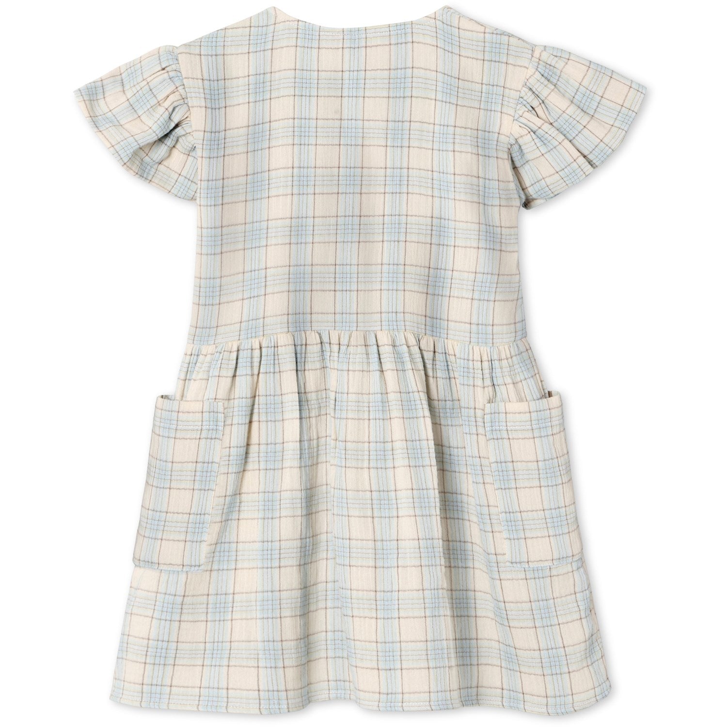 Kle barnet ditt i Fliink Sandshell Check Cha Cha SS Kjole, som er perfekt for varme sommerdager! Denne vevde sommerkjolen er laget av 100% bomull, noe som sikrer en behagelig og pustende kvalitet. Med et sjekket mønster og delikate volangærmer, tilbyr denne kjolen en stilfull, men samtidig leken estetikk. En løs passform og snitt ved midjen gir både komfort og en feminin touch, mens de store lommene på sidene gir praktisk oppbevaringsplass for små skatter barnet måtte finne på sine eventyr. Med stoffkledde knapper langs skulderen, er kjolen enkel å ta av og på, noe som gjør den både funksjonell og fasjonabel. Denne slitesterke kjolen er lett å vedlikeholde med maskinvask på 30 °C.