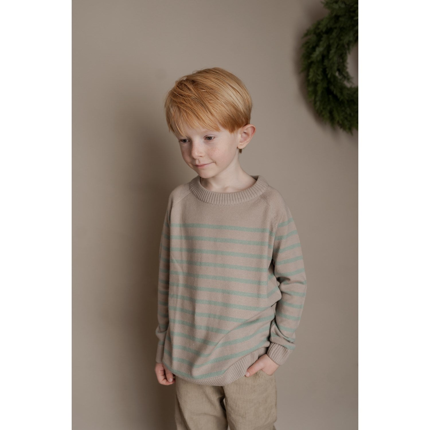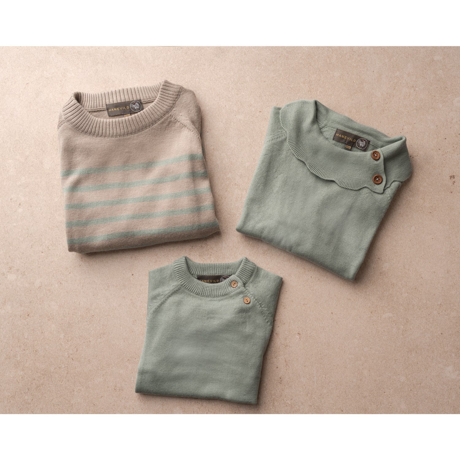 Oppdag den sjarmerende Hanevild Cream Oatmeal Bertil-blusen, perfekt for små oppdagere! Denne myke strikkegenseren i 100% merinoull har delikate striper og behagelige vrangborder i halsen og ved ermeåpningene. Den naturlige ullkvaliteten sikrer både varme og komfort samtidig som den er lett å vedlikeholde; bare ullvask og legging flatt til tørk. Ideell for daglig bruk og spesielle øyeblikk, i en nøytral, tiltalende farge som passer til alt.