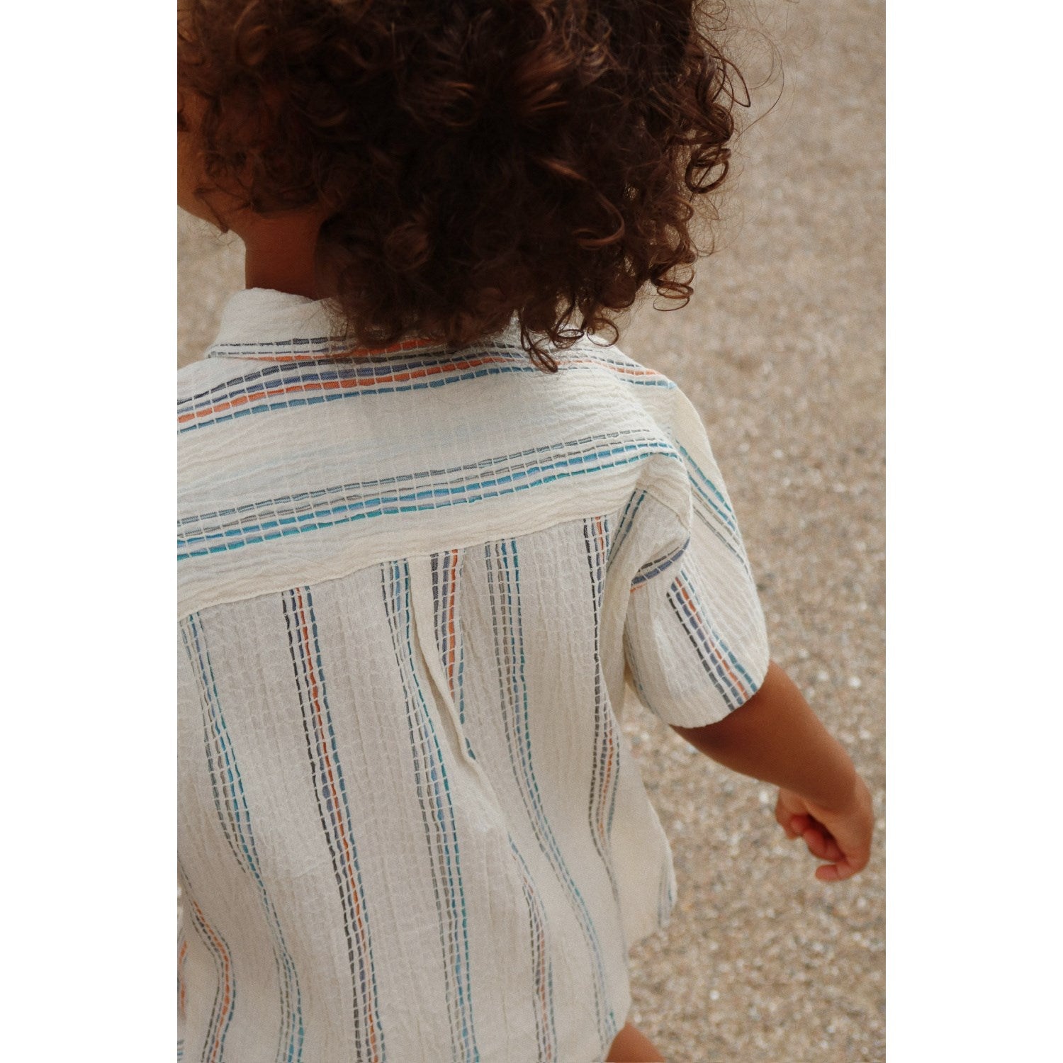 Oppdag vår sjarmerende Konges Sløjd Vincent SS skjorte i antikk hvit, perfekt for ditt barns garderobe. Denne korte ermet skjorten er laget av 97% økologisk bomull og 3% elastan, og tilbyr utmerket komfort og bevegelighet. Med en klassisk seersucker-kvalitet, vanlig krage og praktisk brystlomme kombinerer den stil med funksjonalitet. Skjorten er GOTS-sertifisert, noe som sikrer et miljøvennlig og ansvarlig valg. Ideell for hverdagsbruk eller spesielle anledninger, den passer utmerket med både jeans og shorts.