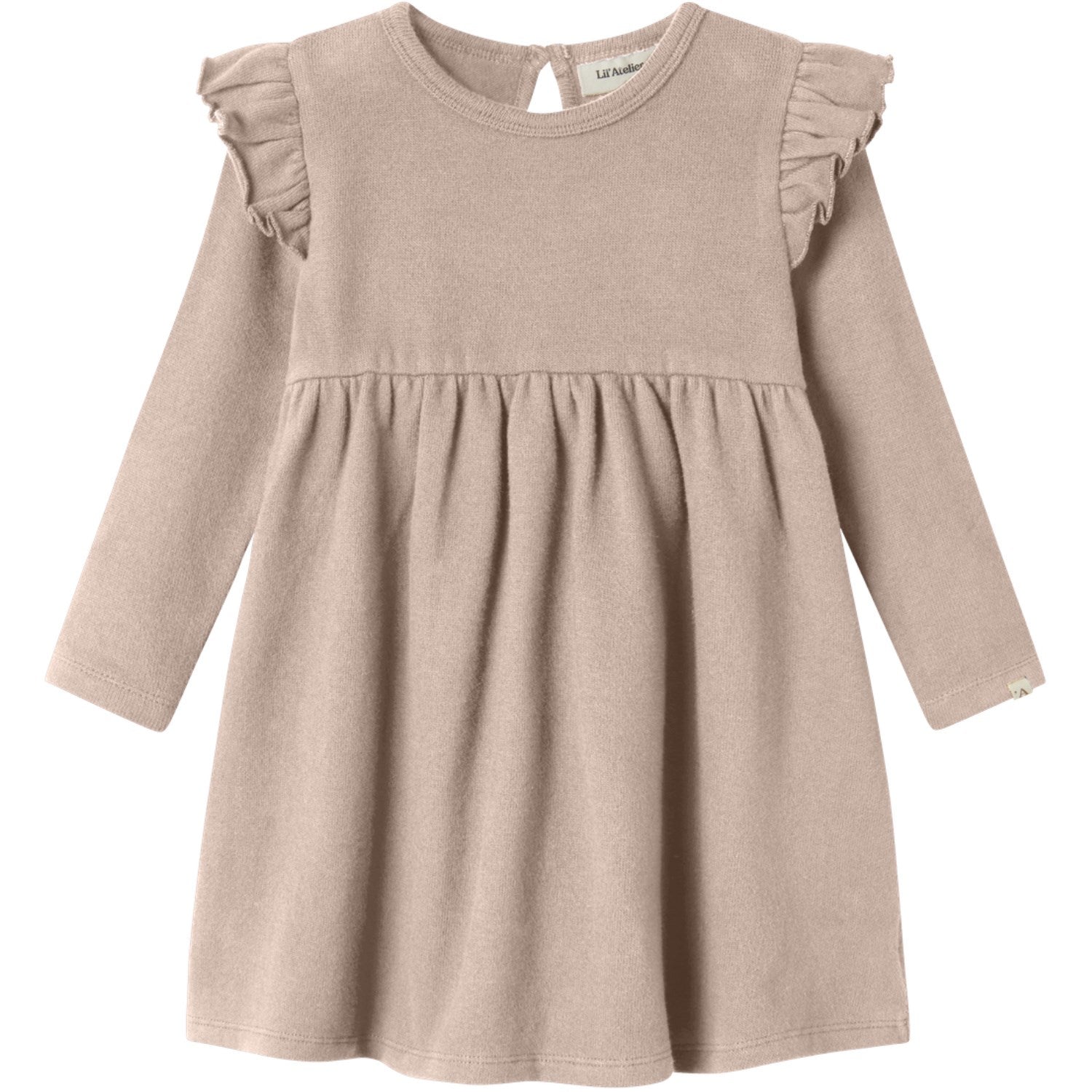 Gi barnets antrekk en nydelig oppgradering med Lil'Atelier Cameo Rose Nmfthora Hee Ls Kjole. Denne sjarmerende kjolen i jersey stoff kombinerer mykhet og elastisitet, noe som sikrer topp komfort og bevegelsesfrihet for barnet. Med sin runde hals og lange ermer gir den både varme og stil. Kjolen har praktisk knapp- og løkkefeste, som gjør den enkel å ta av og på. De lekne frills og etikettdetaljene tilfører et unikt preg som skiller seg ut. Idéell for både hverdagsbruk og festlige anledninger, passer denne kjolen med sin normale passform perfekt for barn som elsker å kombinere komfort med stil.
