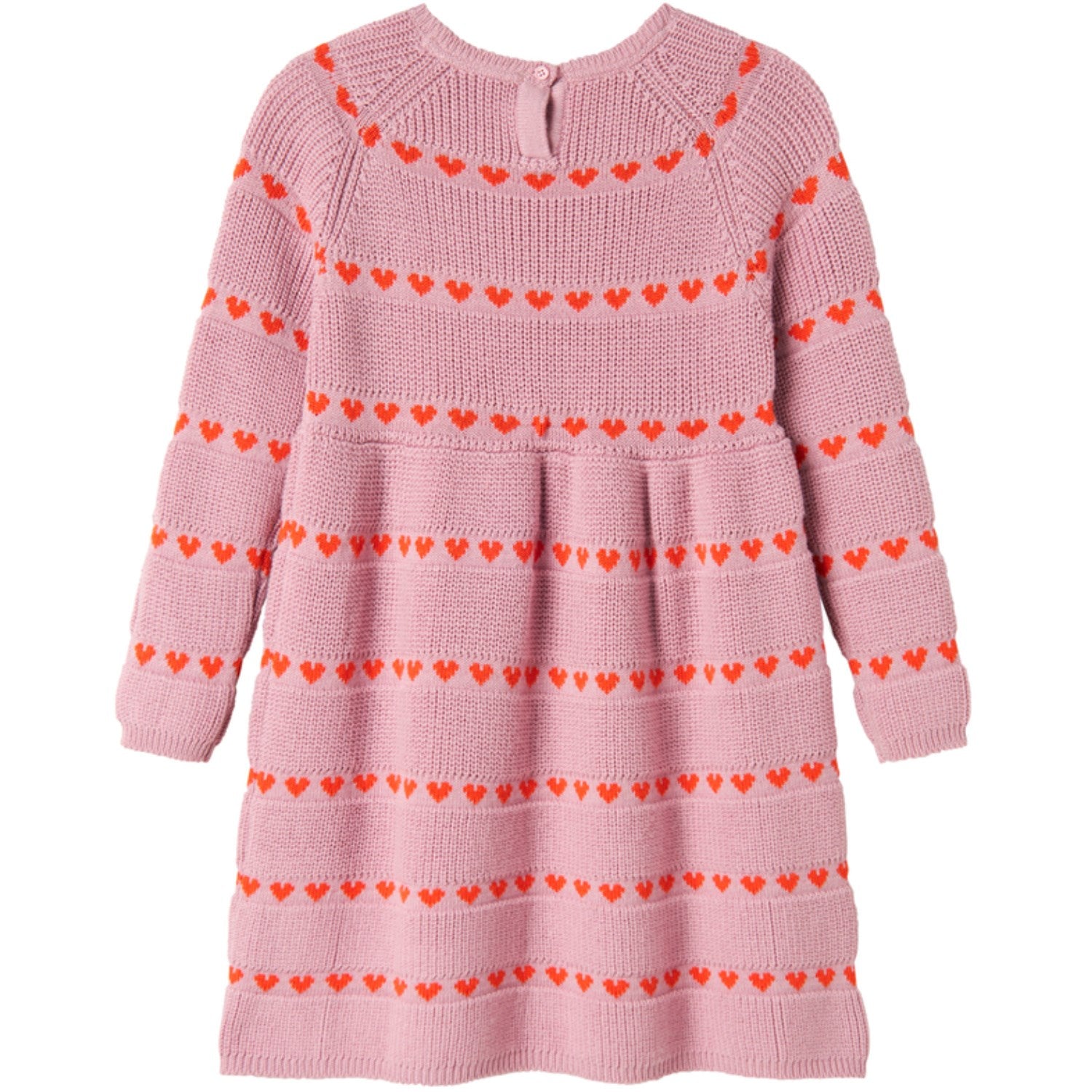 MarMar Light Cotton Wool Pattern Soft Berry Hearts Daso Strikk Kjole
