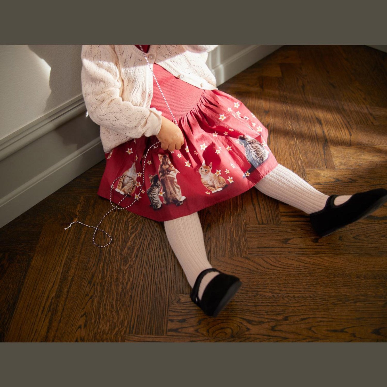 Oppdag gleden ved Molo Velvety Kittens Candi kjolen, en perfekt blanding av stil og komfort for de små. Denne herlige kjolen er fremstilt i myk og behagelig velur, ideell for barnets sensitive hud. Candi kjolen utstråler sjarm med sitt lekne kattunge-motiv og moderne design, mens den iøynefallende fargekombinasjonen legger til et friskt pust i enhver garderobe. Kjolens størrelse og passform er spesialtilpasset for å sikre at barnet beveger seg fritt og komfortabelt, enten ved lek eller ved mer formelle anledninger. Materialvalget sikrer ikke bare overlegen komfort, men også langvarig holdbarhet, og er enkel å vedlikeholde - noe som er essensielt for barneklær. Med Molo Velvety Kittens Candi kjole kan ditt barn uttrykke sin unike stil samtidig som det oppleves enestående komfort. Uansett om det er til hverdagsbruk eller spesielle anledninger, vil denne kjolen være et yndet valg som både er praktisk og stilig. La barnet ditt skinne med Molo - en merkevare kjent for kvalitet og nyskapende design innen barneklær.
