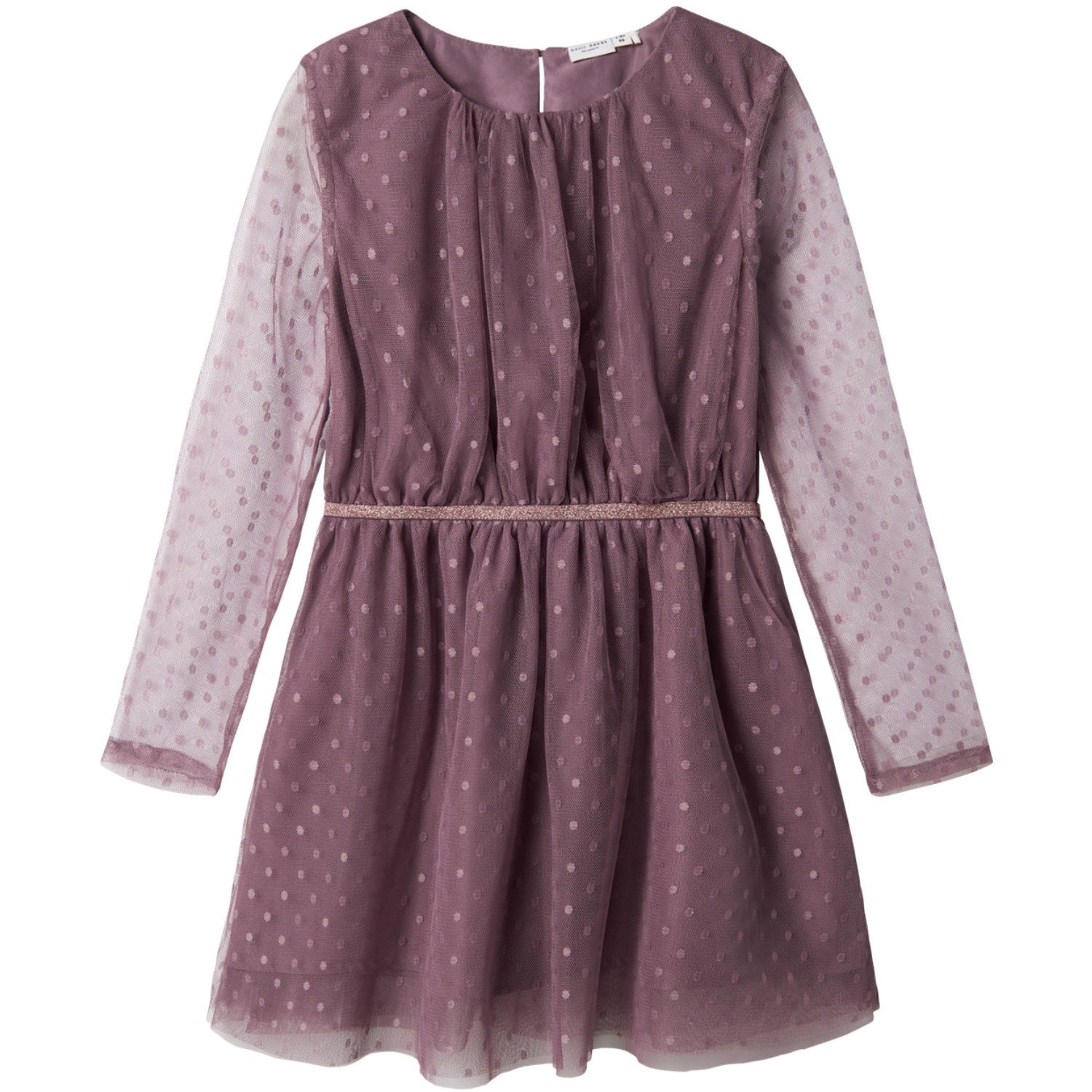 Gi barnets garderobe et løft med Name It Arctic Dusk Vabos Dress Noos, en sjarmerende kjole som blandes makeløst inn uansett sesong eller situasjon. Denne kjolen er fremstilt fra det luftige materialet tyll, som byr på en elegant nettlignende struktur som er både iøynefallende og behagelig. Med sin runde hals og lange ermer gir den et tidløst snitt, mens glitterdetaljer og en elastisk midje tilfører både stil og funksjonalitet.