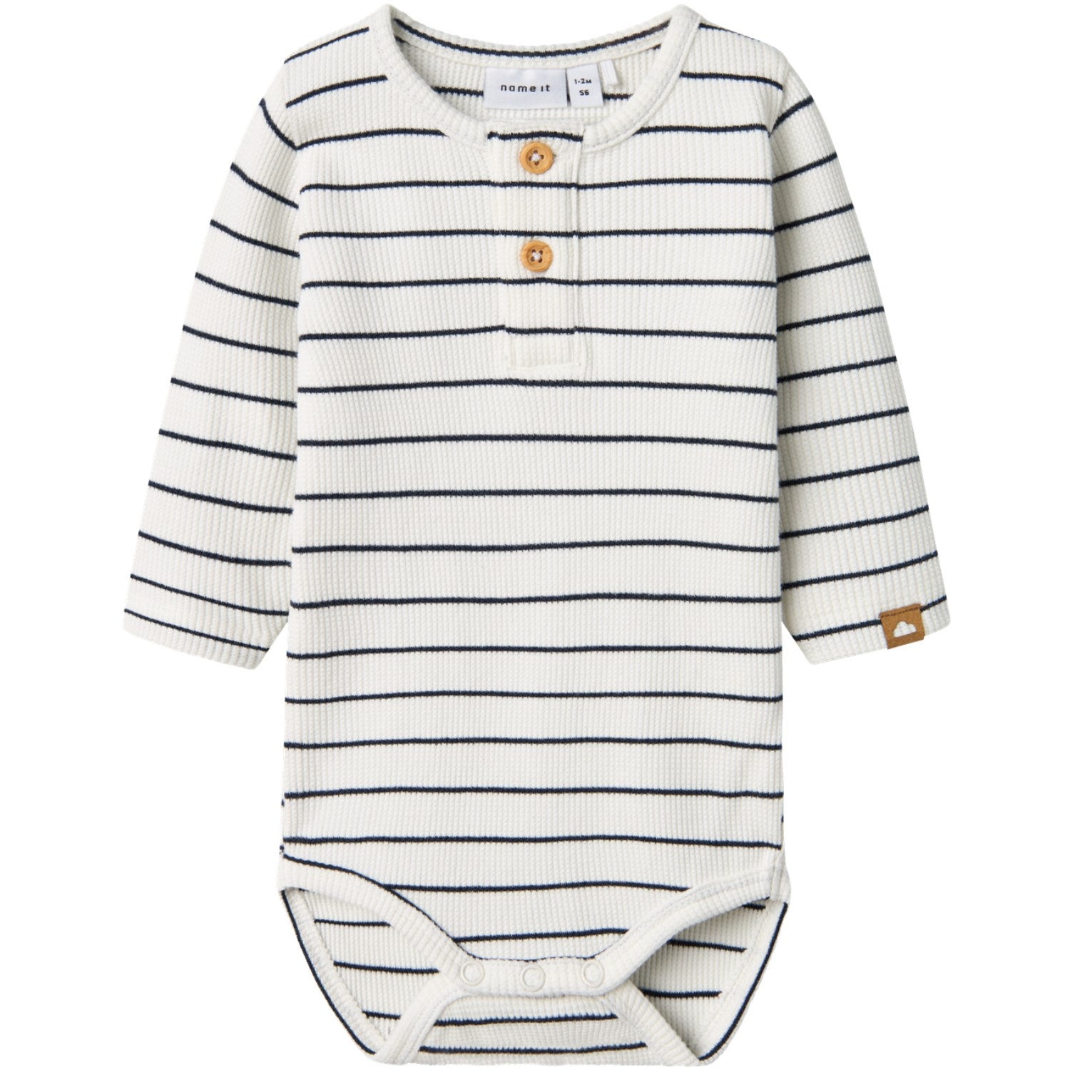 Gi barnet ditt den ultimate komfort med vår "Name It Cloud Dancer Fully Body". Denne bodyen kombinerer stil og funksjonalitet med sin unike vaffelstrikk, karakteristisk for sin kjølige tekstur av små rektangler. Denne søte bodyen er designet med en bestefarkrage og lange ermer, og kommer med praktisk knappe- og trykknapplukking, som sikrer lett av- og påkledning. Perfekt for alle årstider, og laget med omsorg for å vare. Komforten og slitestyrken gjør den ideell for hverdagsbruk. Denne bodyen er en essensiell del av enhver barne-garderobe.