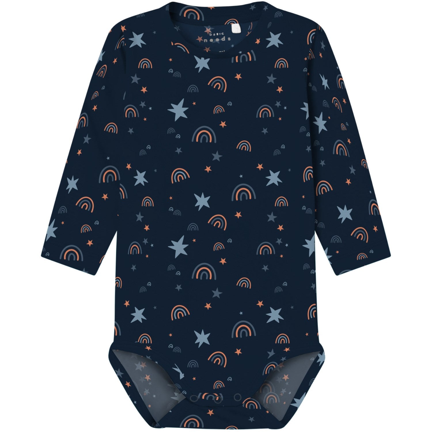 Gjør hverdagen mykere og mer fargerik med Name It Dark Sapphire Rainbow Vroels Body. Denne bedårende bodysuiten kombinerer stil og komfort med sitt jersey-materiale som er både lett og tøyelig, perfekt for barnets bevegelsesfrihet. Med lange ermer og rund hals, gir den en behagelig passform, mens trykknappfestet gjør den praktisk ved klesbytte. Den mørke safirfargen blandet med et lekent regnbuemønster skaper et sjarmerende og trendy utseende. Ideal for daglig bruk, og enkel å vedlikeholde, denne bodyen er en sikker vinner i barnegarderoben.