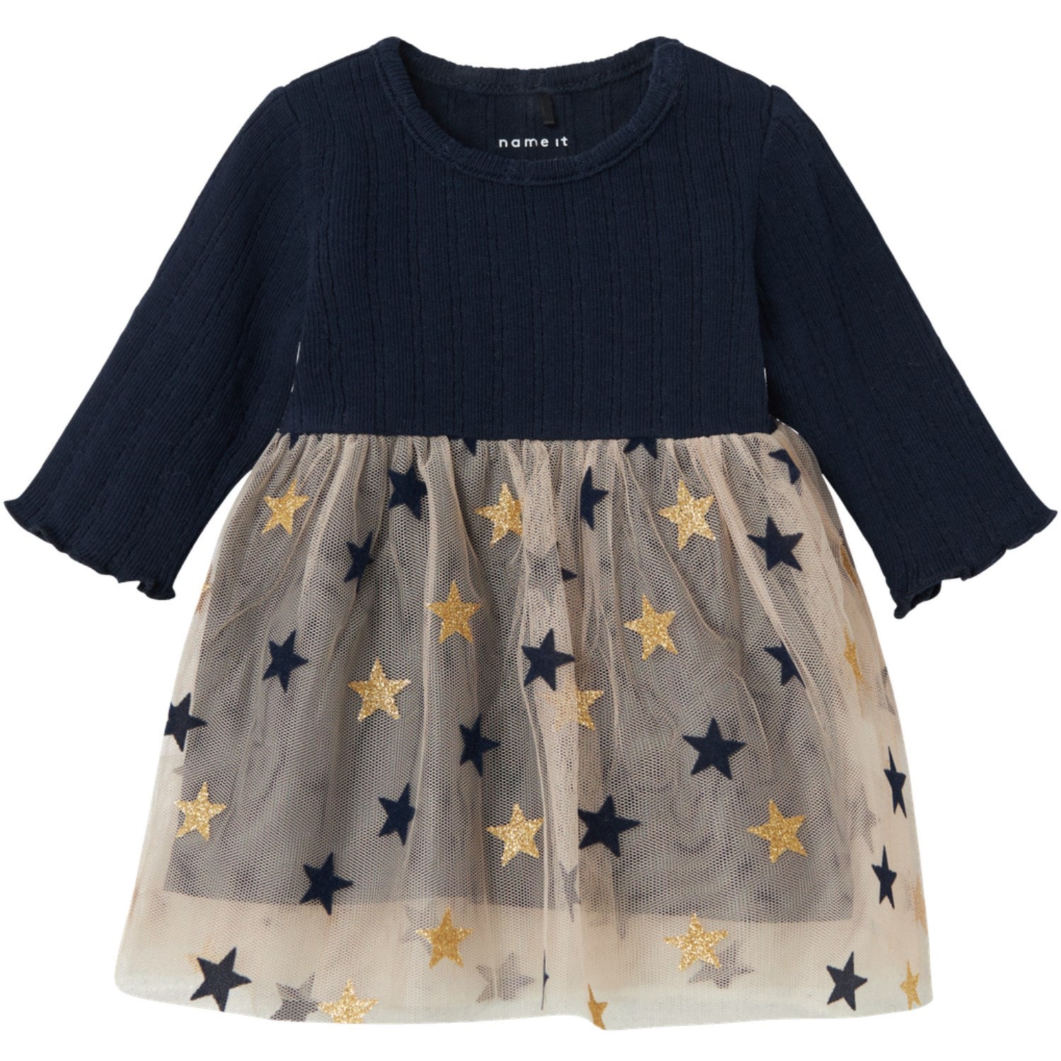 Oppdag den sjarmerende "Name It Dark Sapphire Rinnas Dress", en stilfull tilføyelse til barnets garderobe som lyser opp hverdagen! Denne kjolen, designet i behagelig jersey, er perfekt for både lek og spesielle anledninger, og tilbyr ubegrenset komfort og bevegelsesfrihet takket være det lette og tøyelige materialet. Kjolens rund hals og lange ermer gir en klassisk og tidløs utforming, mens trykknappfestet i skulderen sikrer enkel påkledning. Et glitrende glittertrykk gir denne mørke safirblå kjolen et lekent og iøynefallende preg som garantert vil falle i smak hos de små. Med sin normale passform, er denne kjolen ikke bare stilfull, men også utrolig komfortabel. Den er laget for å tåle lek og bruk over tid, og kan enkelt vaskes og vedlikeholdes. "Name It" merket står for høy kvalitet og holdbarhet, så du kan være trygg på at denne kjolen vil vare. Perfekt for alt fra skole til familiefester, "Rinnas Dress" vil holde barnet både komfortabelt og moteriktig gjennom hele dagen.