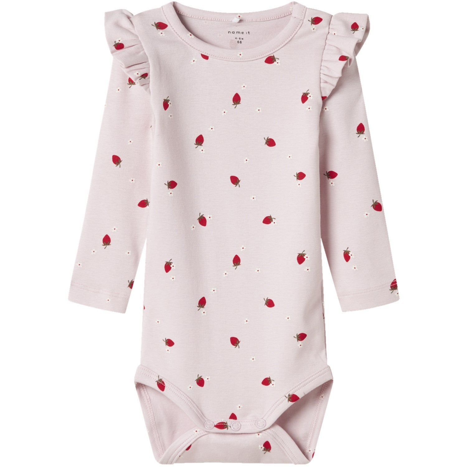Styrk barnets garderobe med denne søte og myke 'Name It Light Lilac Filly Body'. Denne bodysuiten i lys lilla har et nydelig ribbestrikket design med vertikale striper som ikke bare gir en moderne twist, men også sørger for utmerket elastisitet og komfort. Den runde halsen og lange ermene tilbyr god passform og optimal varme, mens trykknappfestet gjør den enkel å ta av og på. De sjarmerende volangdetaljene og det gjentatte mønsteret over hele plagget tilfører et lekent preg. Pass på å holde den unna brann, og vask forsiktig for å bevare kvaliteten. Denne bodysuiten er ideell for daglig bruk, og gjør at barnet ditt ser stilig ut samtidig som det føles behagelig hele dagen.