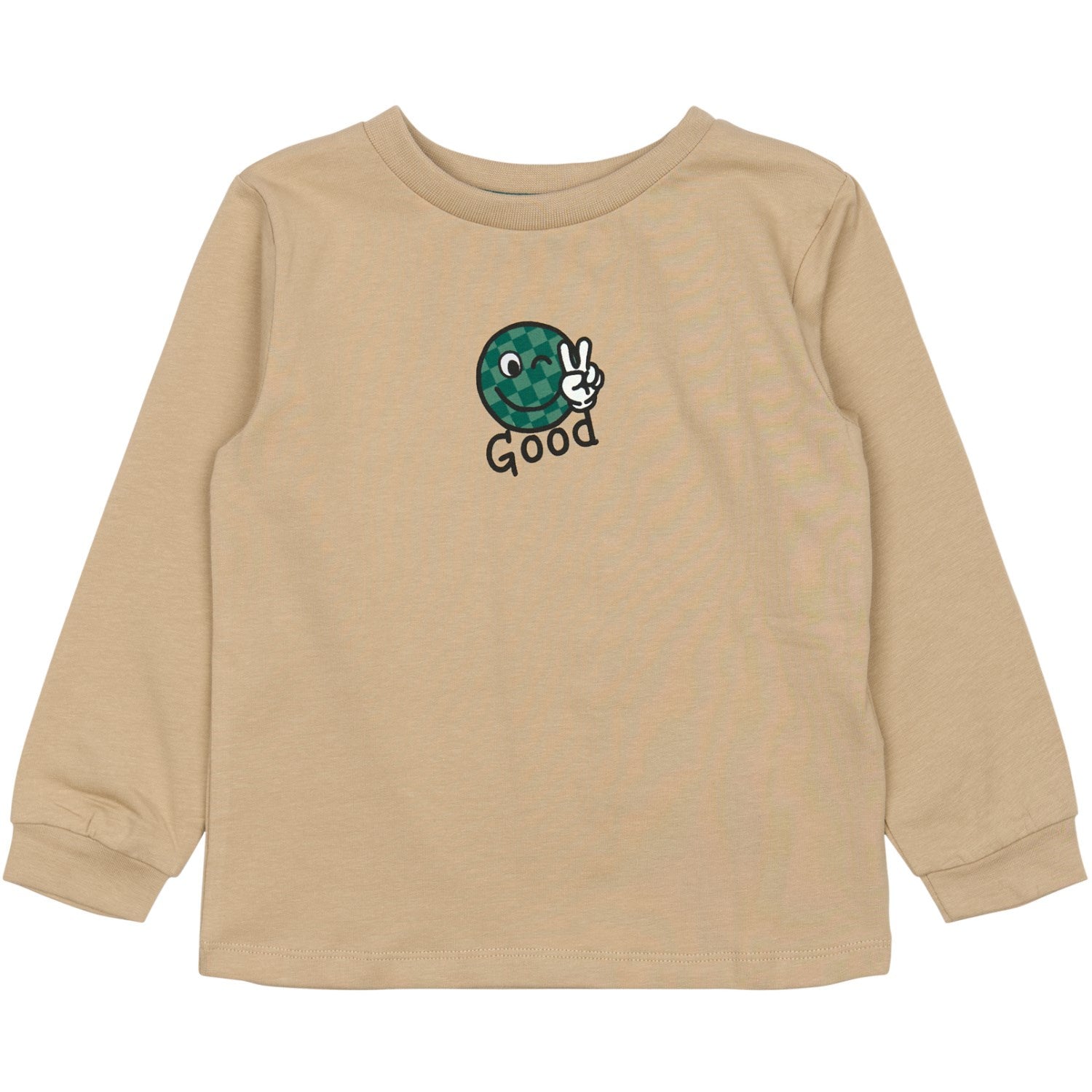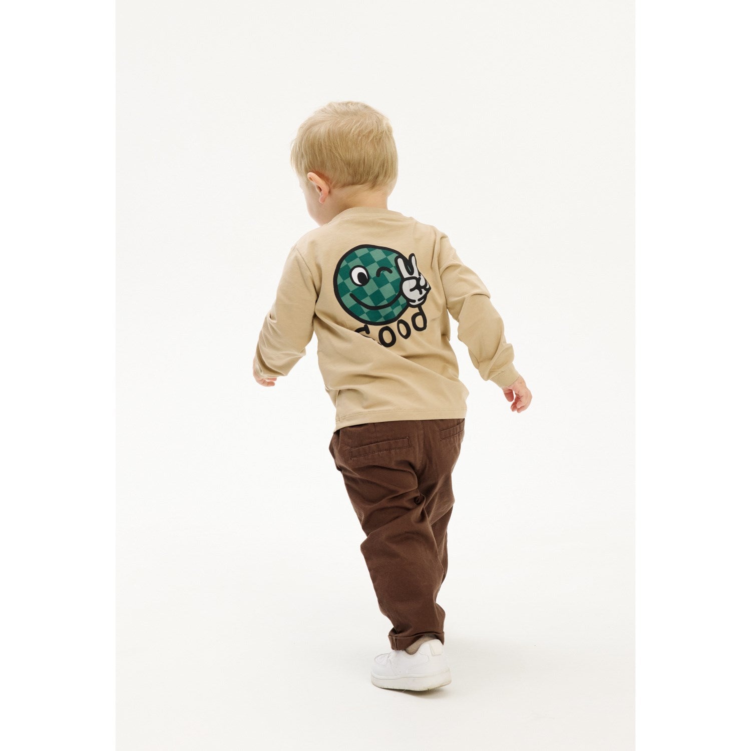 Oppdag den sjarmerende barnegenseren fra THE NEW Siblings, en ekte hverdagshelt for de små. Denne genseren er prydet med et glitrende smilefjes og ordet "Good" som fronttrykk, og en større versjon av designet finner du på baksiden.