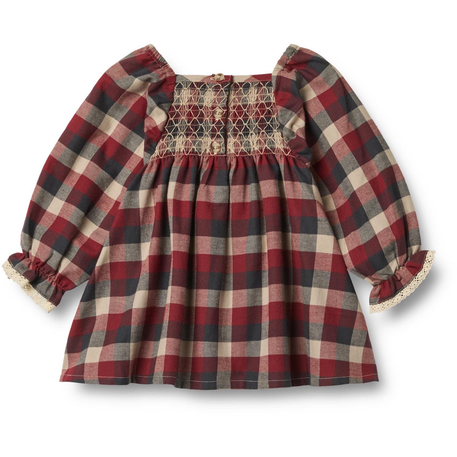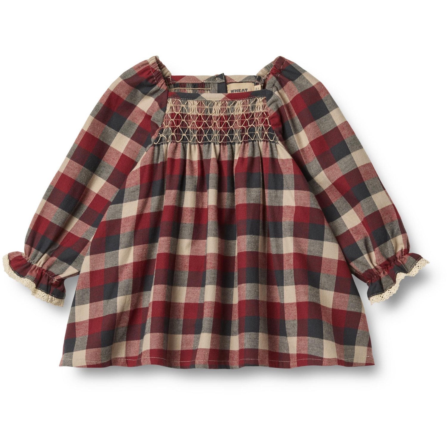 Wheat Red Blue Check Kjole L/S Lace Bella