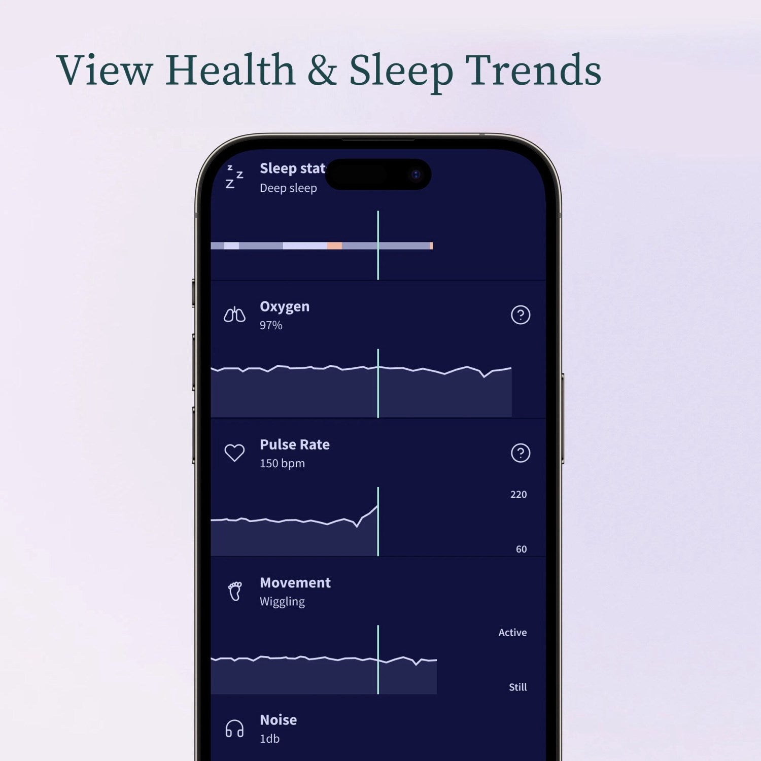 - Gir sanntidsovervåking av babyens hjertefrekvens, oksygen, søvnmønster og mer