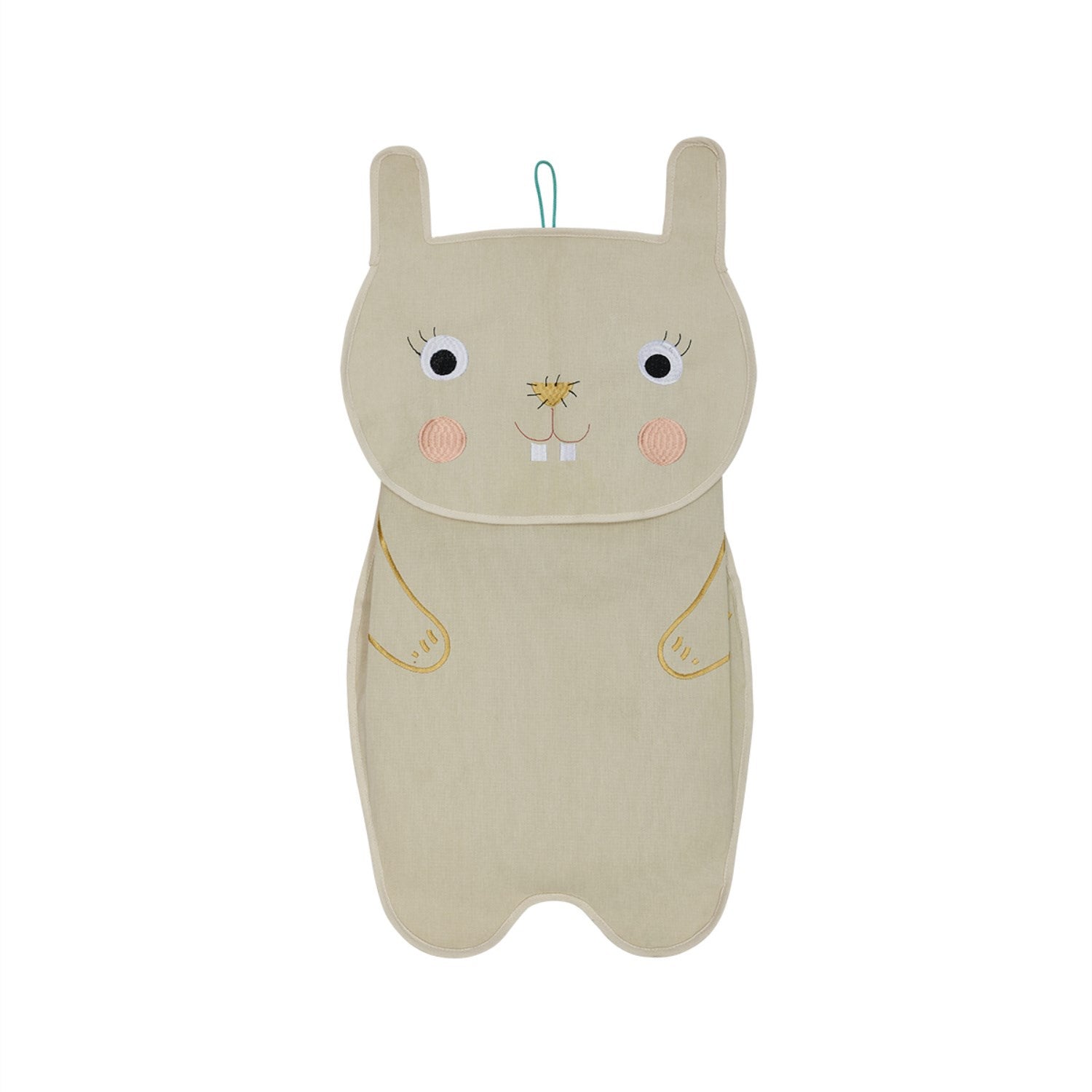 La barnas rom skinne med OYOY Clay Darling Rabbit Veggoppbevaring! Denne sjarmerende oppbevaringsboksen kombinerer funksjonalitet med et elskelig design. Laget av bomull med en slitesterk PE-belagt bakside, tilbyr den en ideell løsning for å holde små leker, bøker og daglige essensialer organisert. Det broderte kaninansiktet på fronten tilfører et muntert preg, mens en robust nylonløkke sikrer enkel opphenging på veggen. Perfekt for å skape et stimulerende og ryddig miljø i barnerommet.