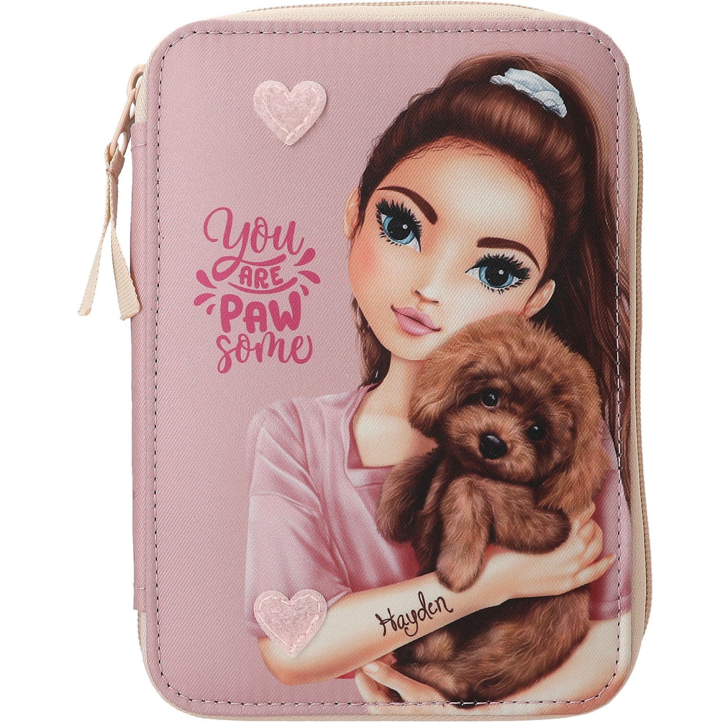 Oppdag det sjarmerende TOPModel Kitty And Doggo Basic Duo Dog-pennalet, perfekt designet for små barn som elsker å tegne og utforske. Denne lillafargede skjønnheten kommer med et iøynefallende hundemotiv og er laget av 100% polyester, noe som garanterer holdbarhet og enkel vedlikehold. Alt nødvendig tilbehør for skolearbeid og kreativ utfoldelse følger med: 9 tynne fargeblyanter, saks, viskelær, dobbel spisser og linjal. En praktisk penneløkke er også inkludert for å holde fyllepennen trygg. Det separate blyantrøret, toppet med et elskelig hundehode, kan enkelt fjernes med borrelås, noe som tilfører både funksjonalitet og en klype lekenhet. Dette pennalet er ikke bare et praktisk oppbevaringssted, men også en kilde til glede og stimulering for ditt barn.