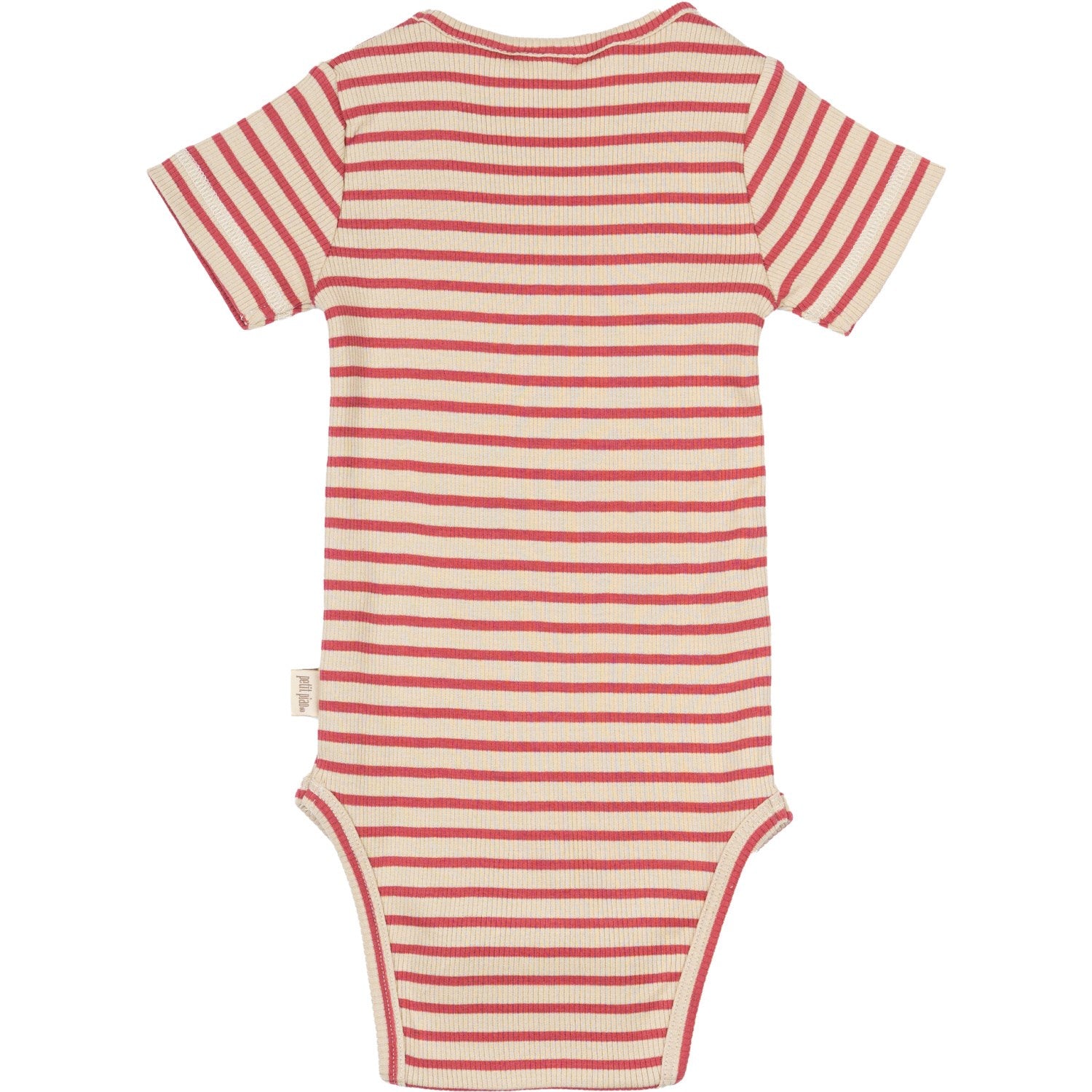 Denne sjarmerende kortermede Petit Piao-bodyen i lyse bær og mørke off-white striper er perfekt for små oppdagelsesreisende! Med den smarte trykknappen i nakkeåpningen og tre trykknapper nederst er det enkelt å kle på seg og skifte bleie. Det myke, tøyelige modalmaterialet omfavner bevegelsene til barnet ditt, og gir frihet til moro og lek. Denne bodyen er laget med omhu i India, og er en myk stift i enhver garderobe.