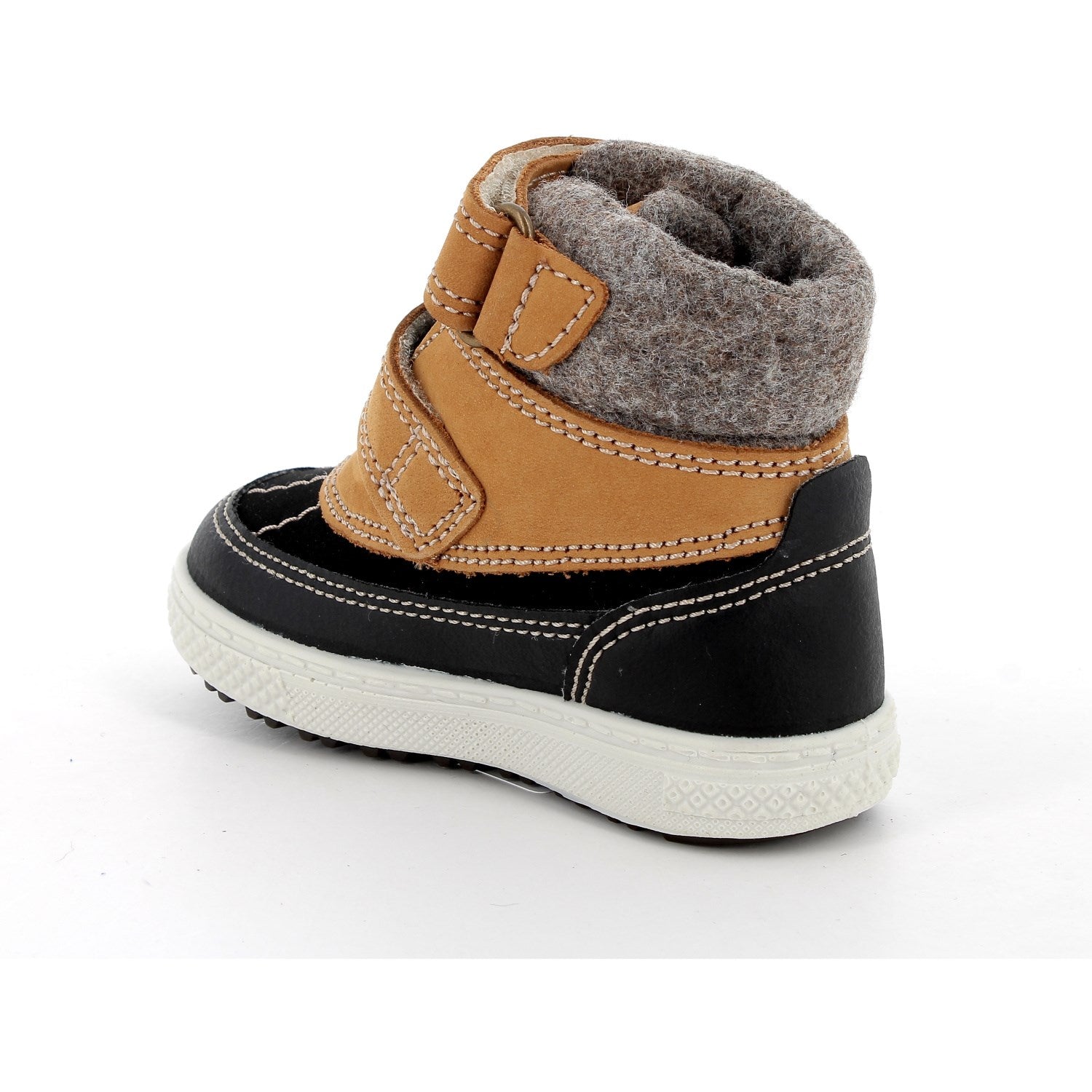 Fargen på støvlene er en nøytral latte-marrone som passer til alle vinterantrekk, mens det diskrete mønsteret tilfører et snev av stil. Takket være de to borrelåsstroppene, er støvlene enkle for barnet å ta av og på, noe som fremmer selvstendighet. Den fleksible gummisålen med et robust mønster sikrer godt grep og stabilitet på glatte overflater.