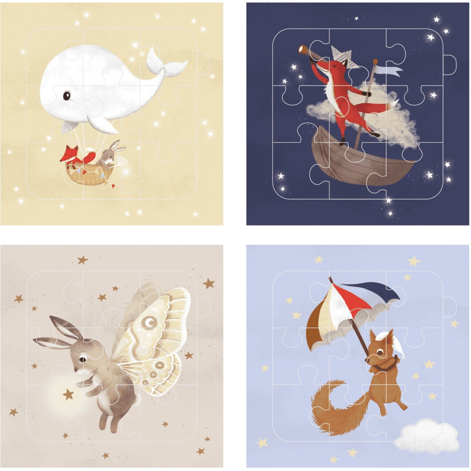 - 4 engasjerende puslespill, hver med 9 tykke brikker