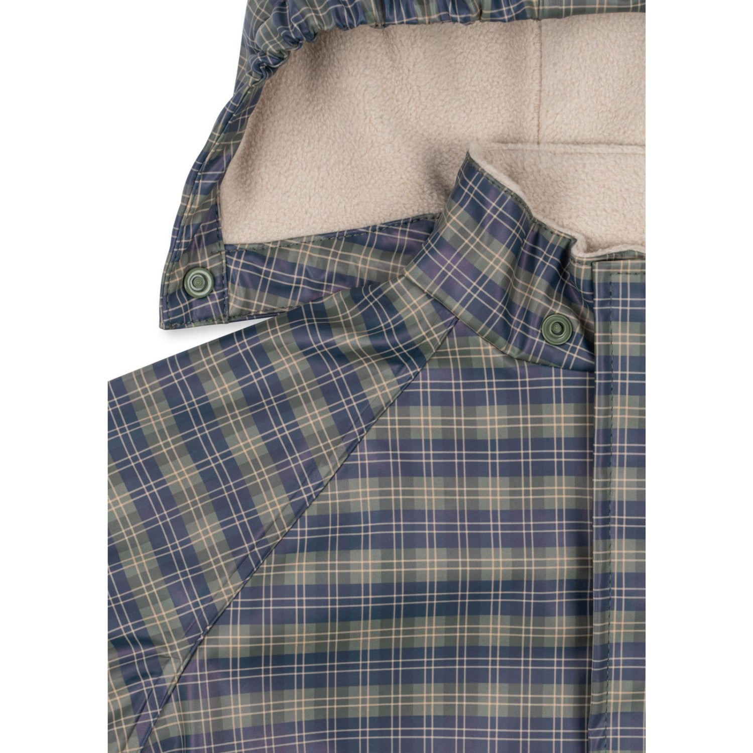 La ditt barn nyte regnværsdager med Konges Sløjd Laurel Blue Check Rainy Palme Sett! Dette settet er laget av vindavvisende og vanntett PU-materiale, og kommer med et varmt fleecefôr innvendig for ekstra komfort. Designet er preget av et sjarmerende blått sjekkmønster, som gjør det stilfullt samtidig som det holder barnet tørt. Detaljene inkluderer en fôret, avtakbar hette og elastiske mansjetter som sammen med de sveisede sømmene sikrer komplett beskyttelse mot været. Dette regntøyet kombinerer funksjonalitet med komfort, noe som gjør det til en ideell følgesvenn for utespill og eventyr i all slags vær.