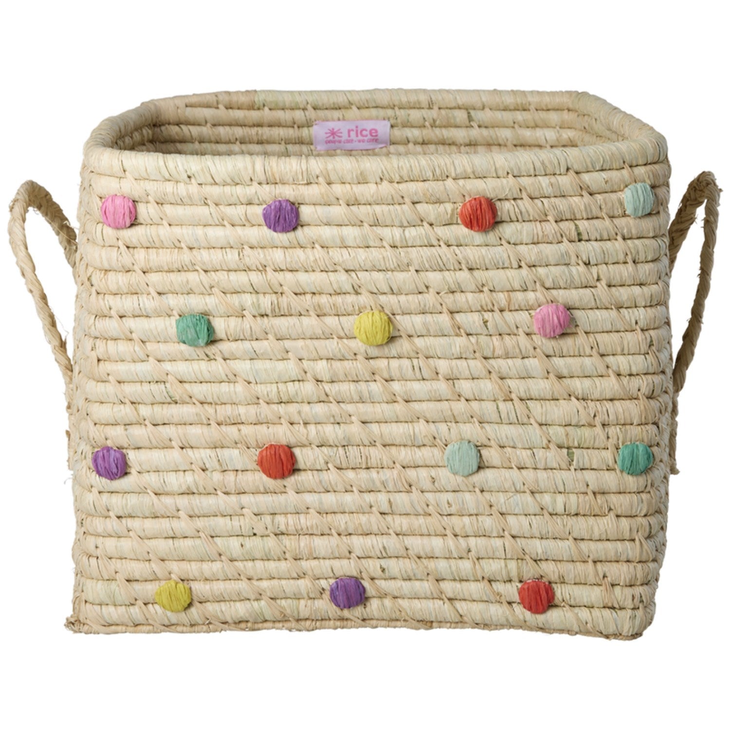 Rice Raffia Square Kurv Med Dots In Glory Days Colors