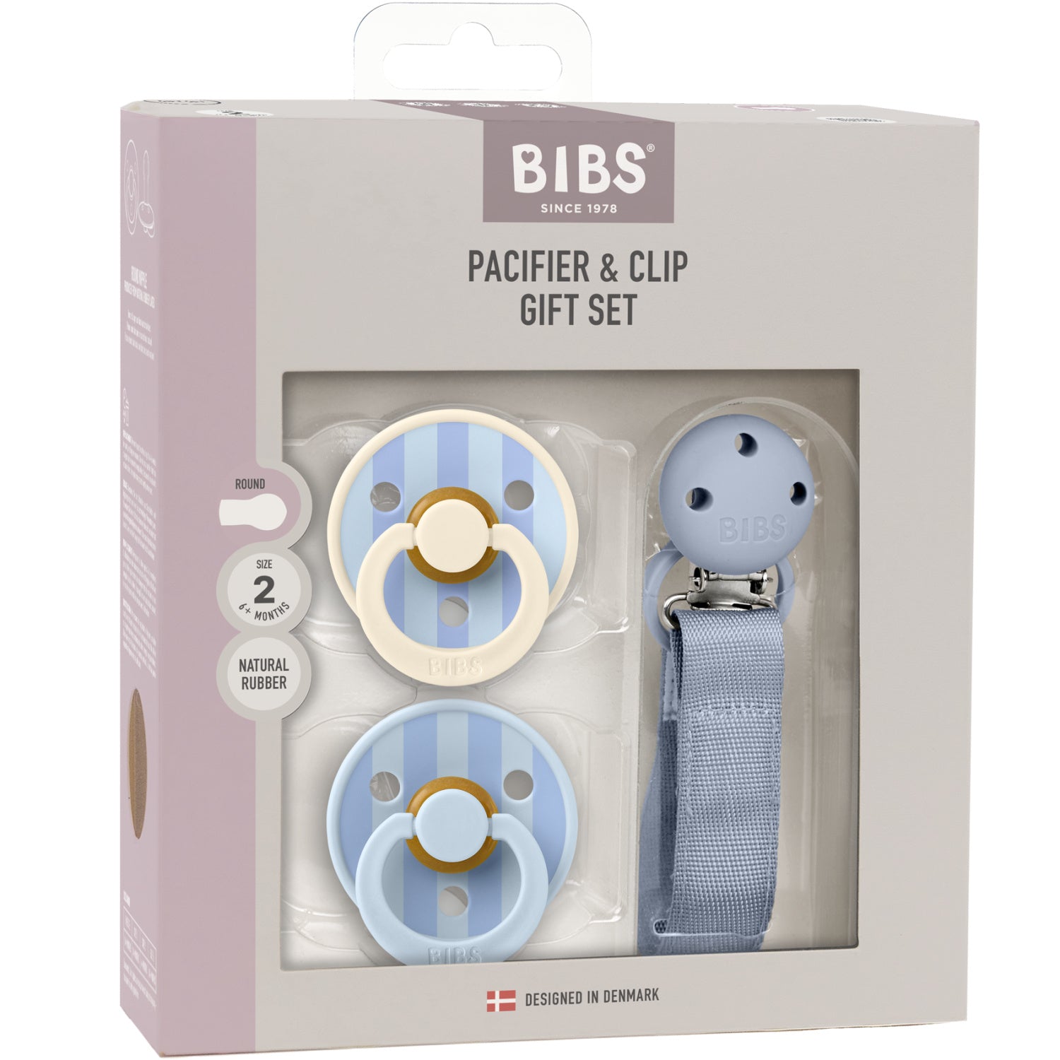 Bibs Dusty Blue Smokk & Clip Gift Sett Pin & Block Latex