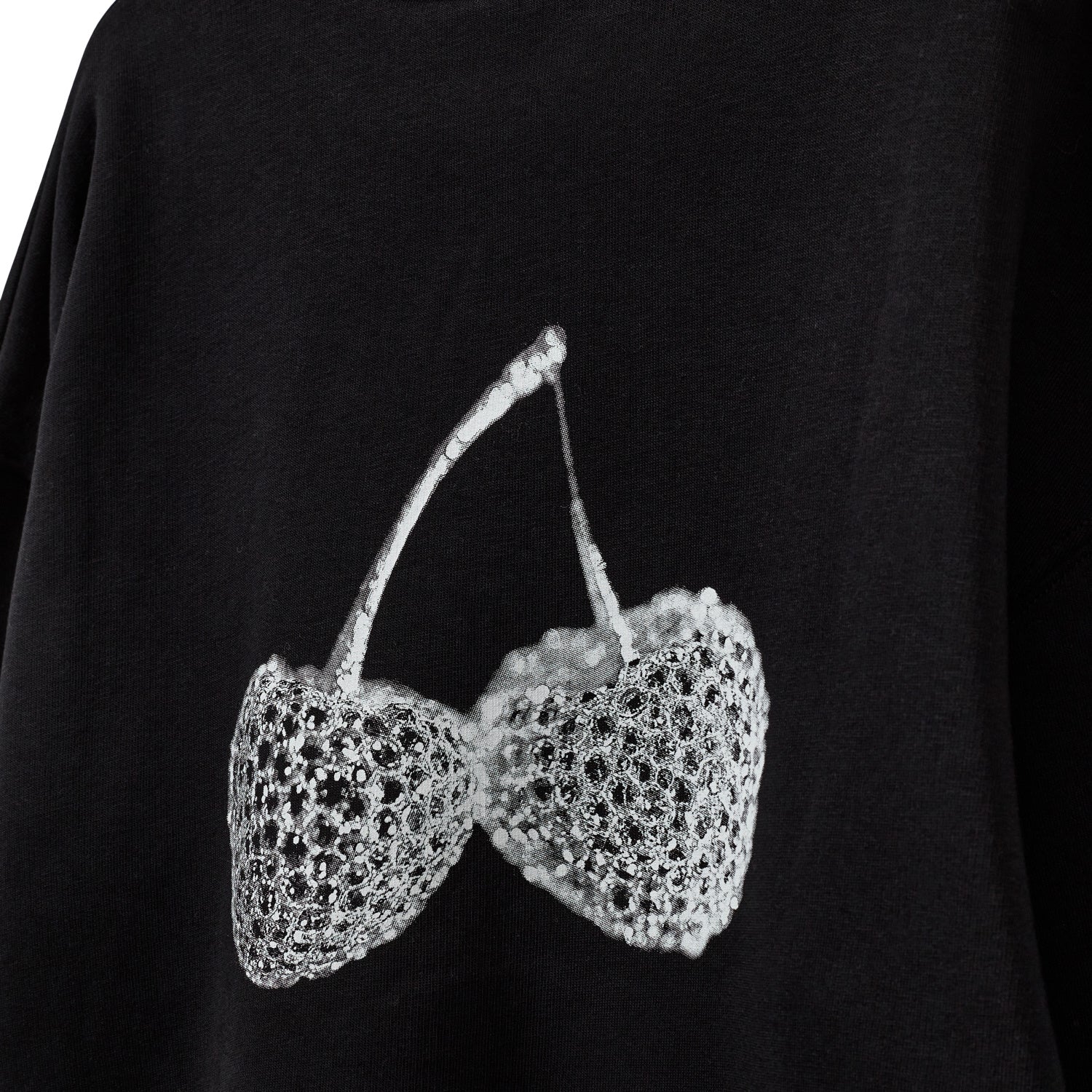 Denne genseren fra Sofie Schnoor kombinerer komfort med letthet og stil. Det svarte designet med rund hals og lange ermer sikrer en komfortabel passform, mens ribbestrikket kant bidrar til å opprettholde formen. Det unike "kirsebærglam"-trykket på brystet og det dekorative kirsebærmotivet på baksiden gir et lekent preg. Ideell for hverdagsbruk og for å holde barnet ditt varmt med stil. Materialer: 70% Bomull, 30% Polyester Vaskeinstruksjoner: Husk å følge vaske- og bruksanvisningen Sweater i sort Let kvalitet Rund halsudskæring Langærmet Ribstrikket langs kanten Trykt mønster på brystet med teksten "cherry glam" og på bagsiden et kirsebærmotiv